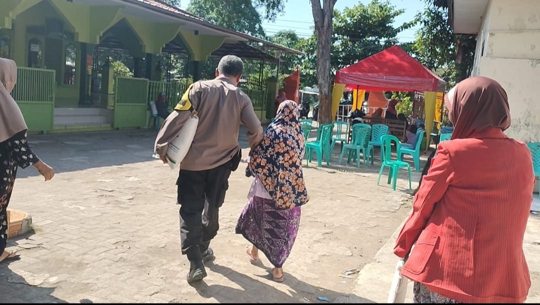 Bhabinkamtibmas Kalijaga Polsek seltim Polres Cirebon Kota kawal lansia KPM bansos beras