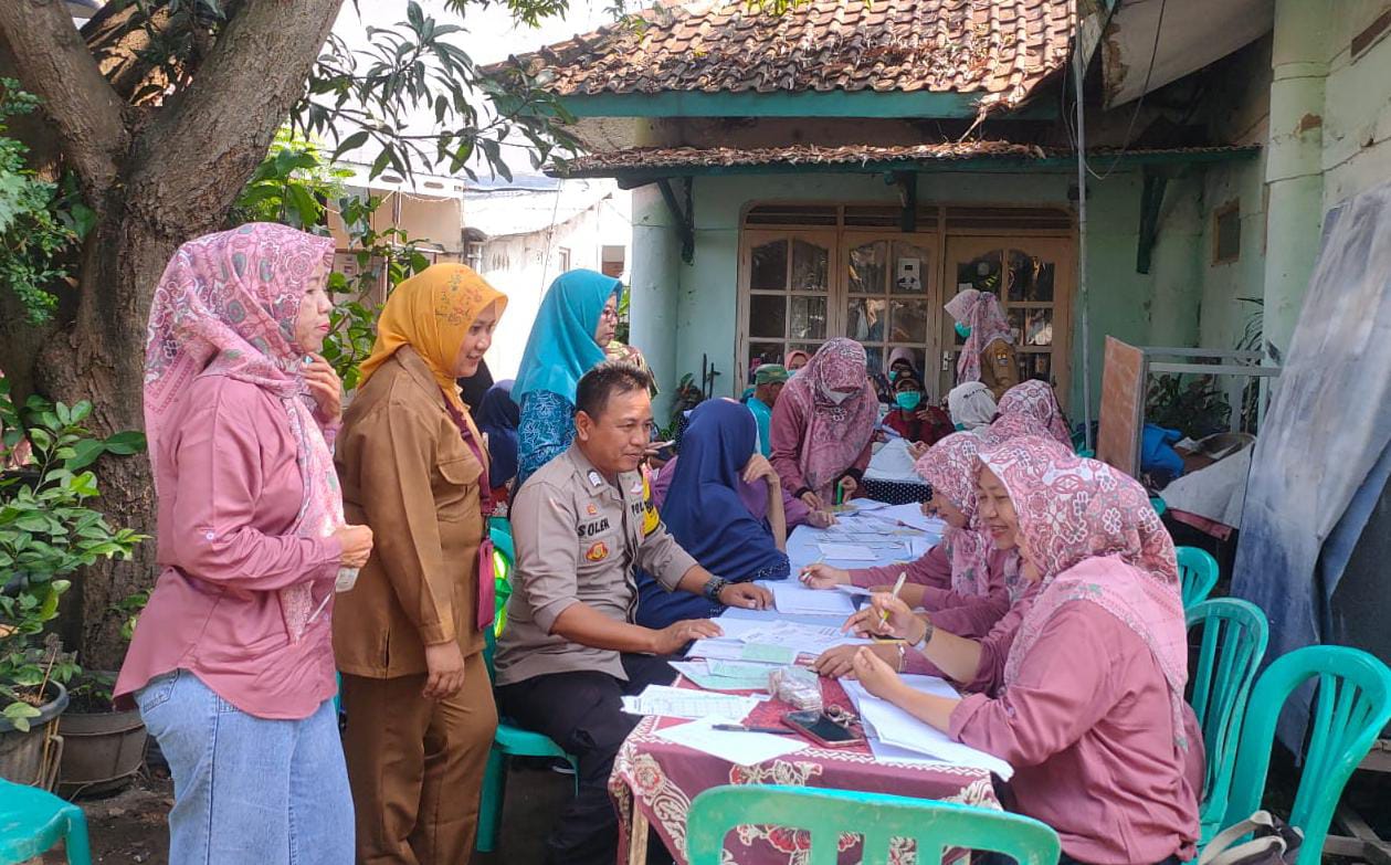 POLRES CIREBON KOTA,- Bhabinkamtibmas Kelurahan Kebon Baru Polsek Utbar Polres Cirebon Kota Bripka Solih Sambangi pelayanan Posyandu RW. 04 Kelurahan Kebon Baru Kecamatan Kejaksan Cirebon Kota.