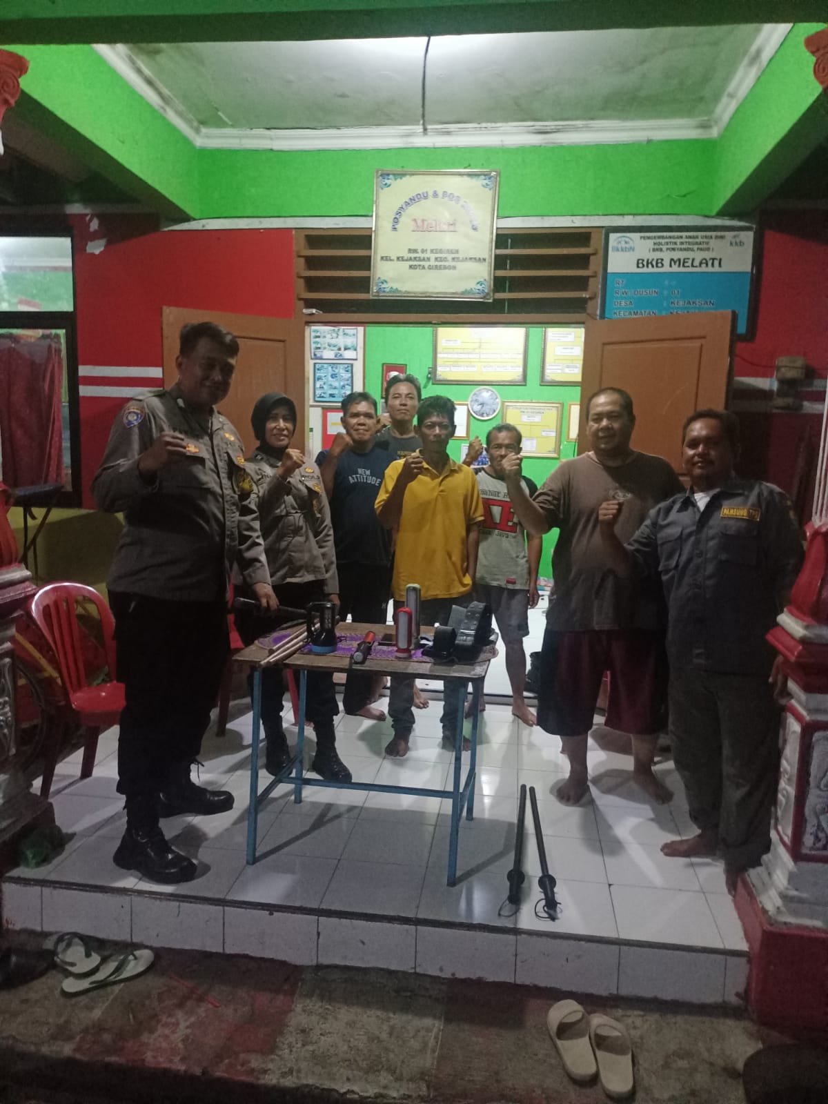 Dalam sambang patrolinya , Bripka Pendi mengecek kelengkapan sarana siskamling , diantaranya lampu senter, tongkat,