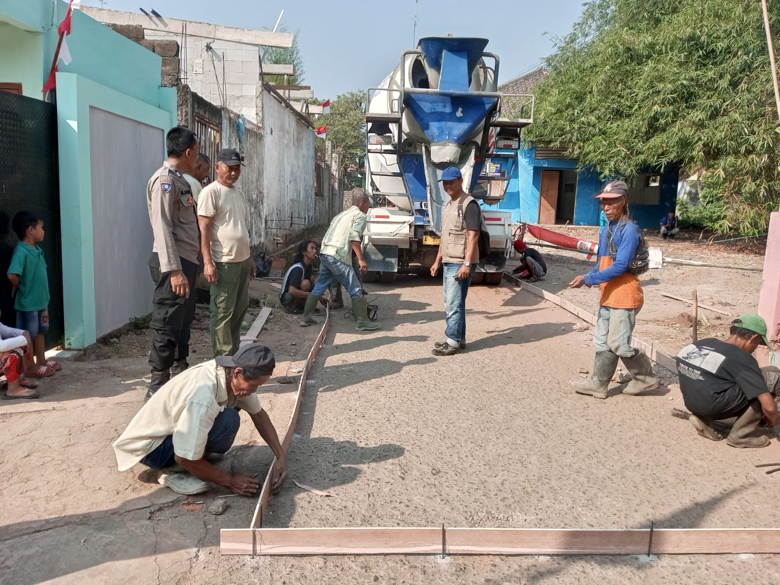 Polres Bogor- Polsek Citeureup, Bhabinkamtibmas Kelurahan Puspa Negara Polsek Citeureup Polres Bogor Polda Jabar Aiptu M. Ashari telah melaksanakan tugas Pelayanan Publik melalui Memonitoring Pengecoran Jalan Sami Sade dekat kantor kecamatan Citeureup, (27/08/2023).