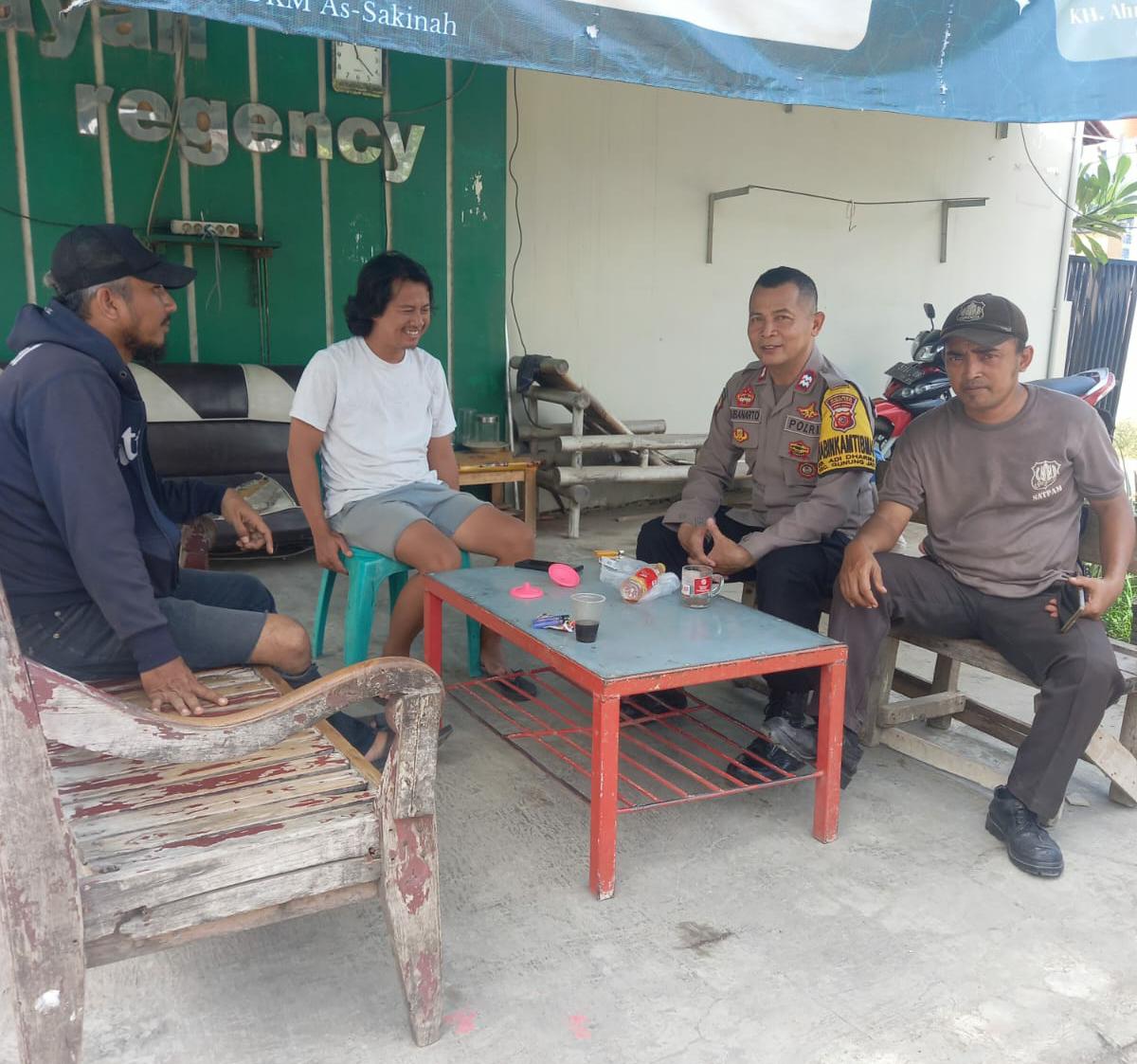 Bhabinkamtibmas Kelurahan Kesambi AIPTU Ade Wardaya , menyatu bersama warga melalui diskusi Kamtibmas di kesambi dalam RW 05 sigendeng ajak jaga kerukunan Pemilu 2024 di lingkungan , Selasa (23/04/2024).