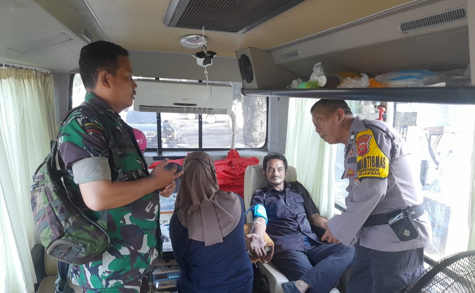 POLRES CIREBON KOTA,- Anggota Bhabinkamtibmas Kelurahan Kesenden Aiptu Imam Safei monitoring kegiatan Donor darah yang digelar Kelurahan Kesenden bekerjasama dengan Puskesmas Kejaksan Cirebon Kota, Selasa (27/06/2023).