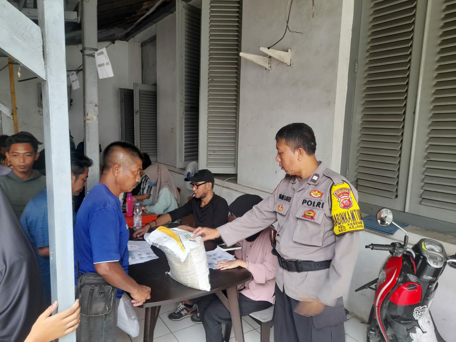 Bhabinkamtibmas Kelurahan Kesenden Aiptu Imam Safei melakukan Pengamanan dan Pemantauan Penyaluran Penerimaan Bantuan Pangan Tahun 2024 berupa pembagian Beras bagi warga masyarakat tidak mampu di Kelurahan Kesenden Kecamatan Kejaksan, Cirebon Kota, Selasa (30/01/2024)