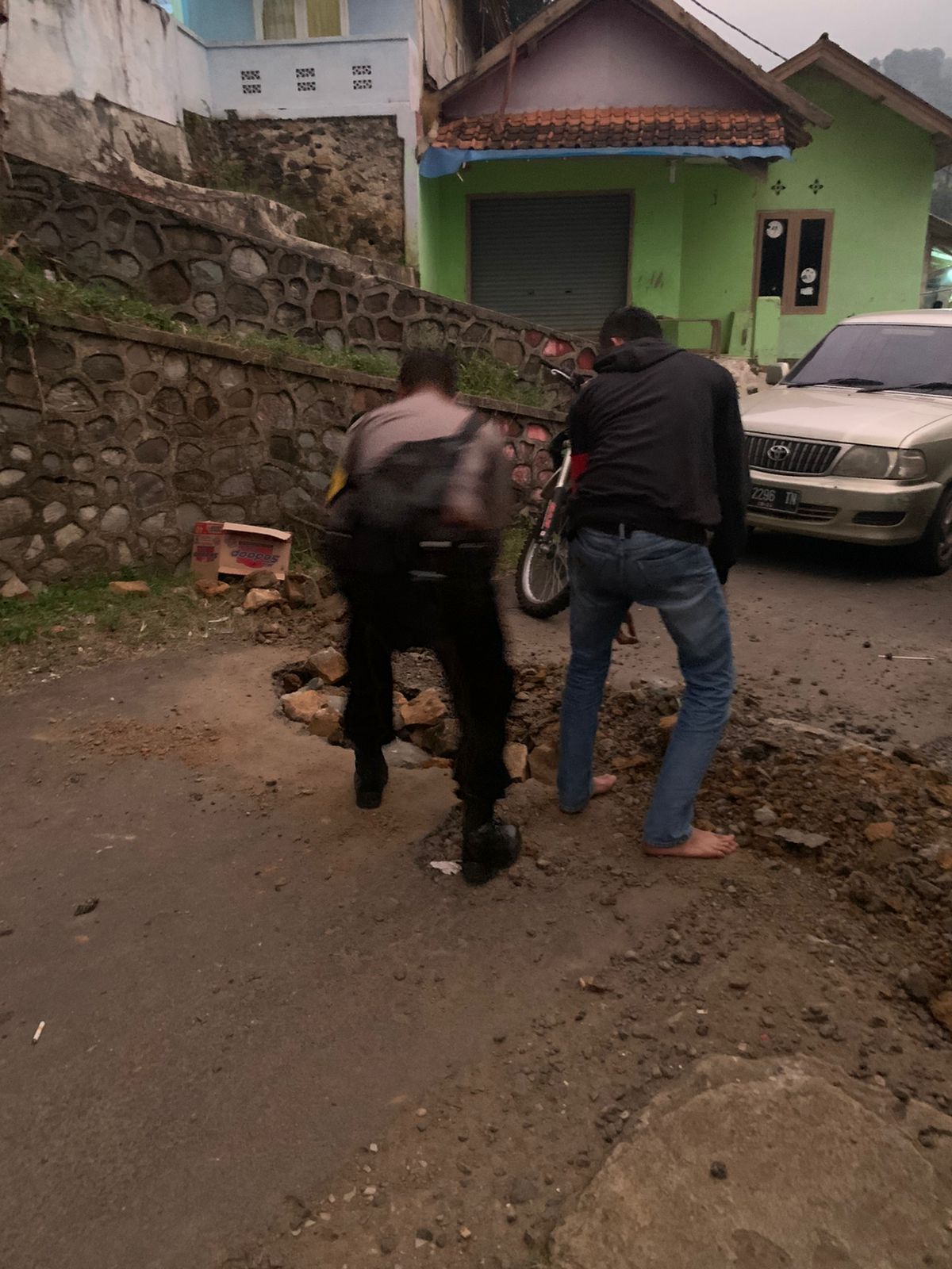 Untuk mewujudkan Kondusifitas Kamtibmas diwilayah binaanya Brigadir Agung Barokah melaksanakan sambang Warga serta bersama warga melakasanakan perapihan jalan lingkungan berlubang sekaligus membangun Sinergitas untuk menjalin Kemitraan diantara Aparat Keamanan dan Warga.