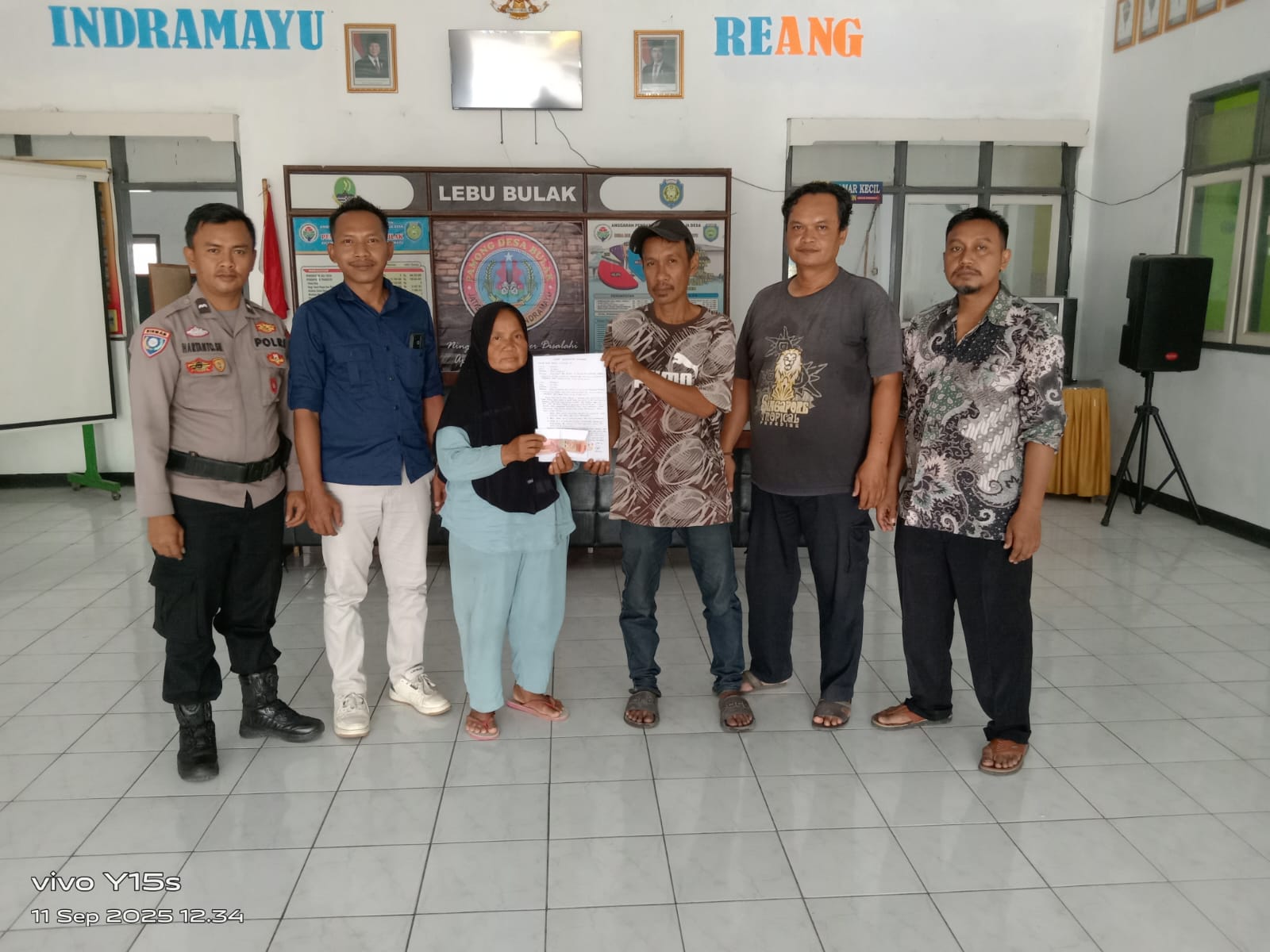 Indramayu – Bhabinkamtibmas Desa Bulak, Polsek Jatibarang, Polres Indramayu Polda Jabar Aipda Hartanto, SH., memfasilitasi penyelesaian masalah (problem solving) antara dua pihak yang terlibat kecelakaan lalu lintas di Kantor Balai Desa Bulak, Kecamatan Jatibarang, Kamis (11/9/2025).