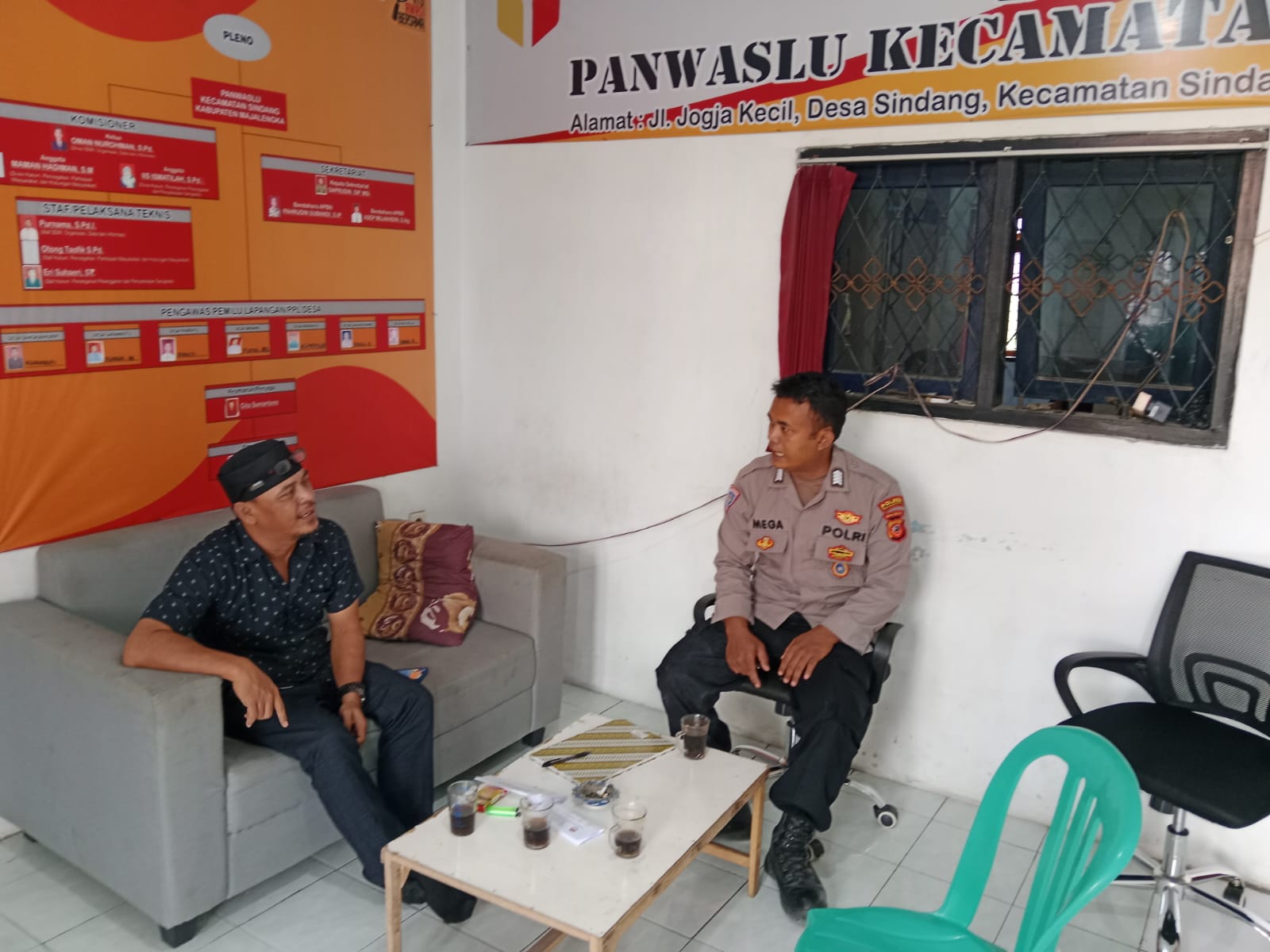 Sebagai wujud kedekatan Polisi dengan anggota panwas kec sindang. kegiatan ini tidak hanya melakukan sambang maupun sosiali tentang menciptakan masyarakat sadar akan ke amanan, namun silaturahmi dan sambang untuk mendekatkan diri kepada warga masyarakat dengan cara door to door system (DDS) di desa binaannya guna melakukan sambang dan Dialogis.