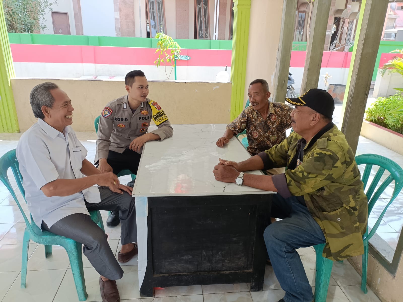 POLRES CIREBON KOTA,- Bripka Rosid bhabinkamtibmas desa Mundu Pesisir Polsek mundu Polres Cirebon kota jalin silaturahmi sambangi perangkat desa dan warga di balai desa Mundu Pesisir, Kecamatan Mundu Cirebon Kota Diskusi Kamtibmas, Kamis (26/09/2024).
