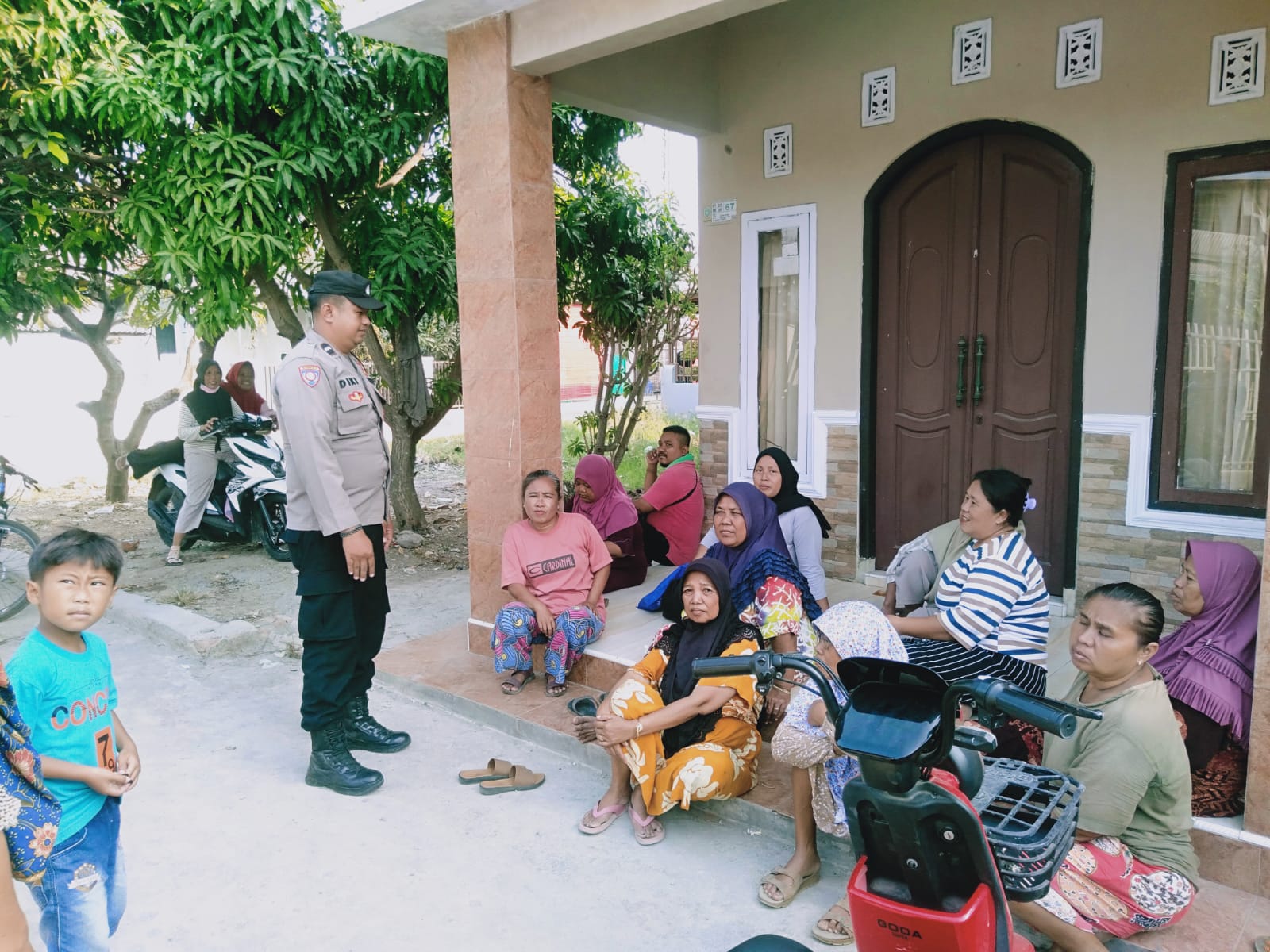 Dalam kesempatan tersebut, Bhabinkamtibmas mengajak ibu-ibu untuk turut berperan aktif dalam menjaga keamanan dan ketertiban di desa.