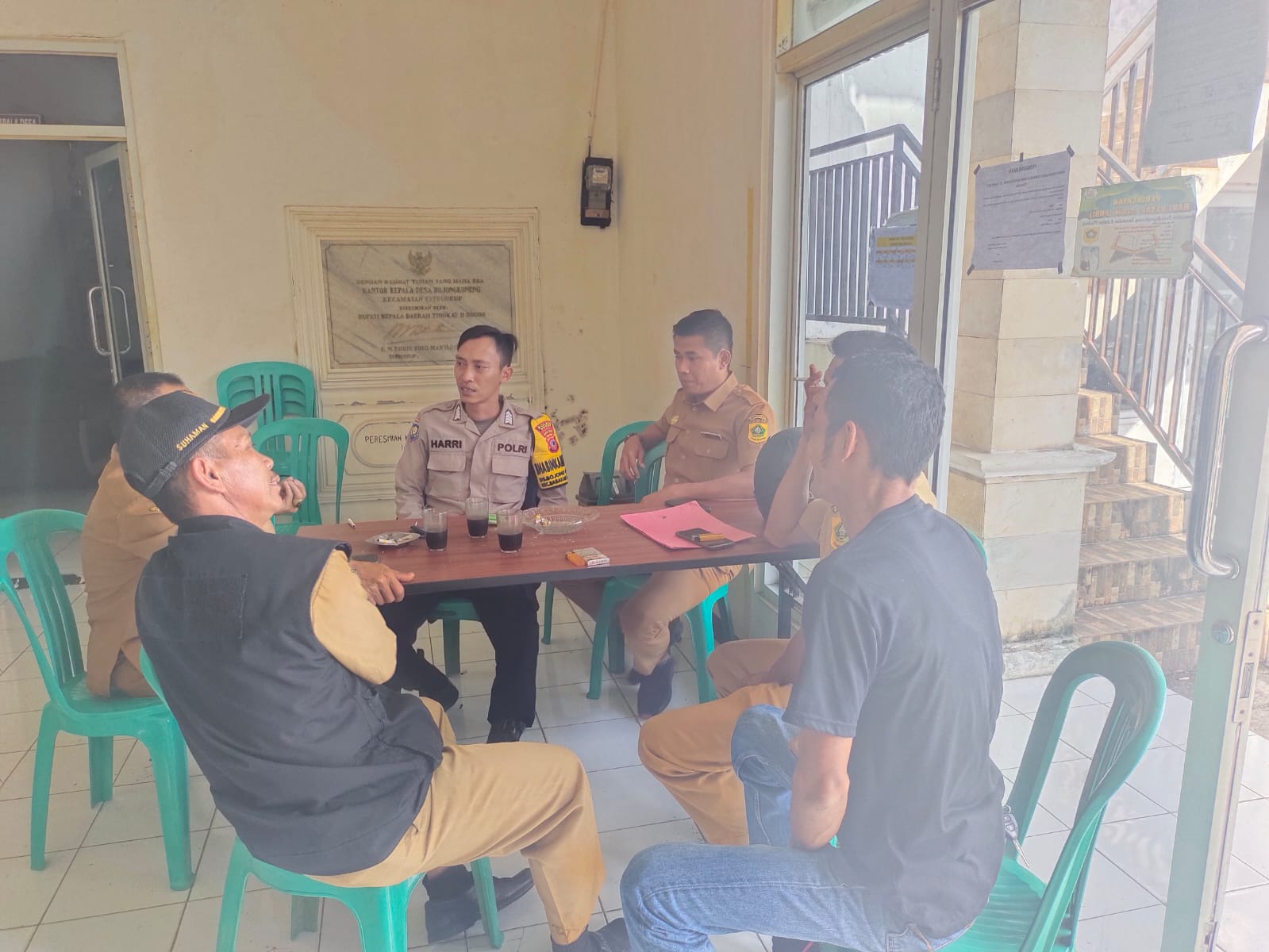 Dalam sambangnya, Bhabinkamtibmas melaksanakan Dialog dengan warga dan staf desa Bojong Koneng sekaligus menyampaikan pesan kamtibmas agar meningkatkan kewaspadaan yang mencurigakan atau kejadian menonjol, agar segera melaporkan kepada pihak Kepolisian,” ujar anggota Bhabinkamtibmas Polsek Babakan