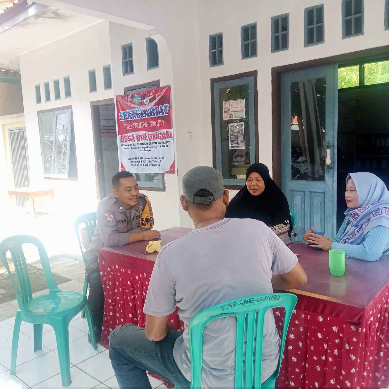 Indramayu, — Menjelang Pemilihan Kuwu (Pilwu) Desa Balongan, Kecamatan Balongan, Kabupaten Indramayu, jajaran Polsek Balongan Polres Indramayu Polda Jabar aktif menjalin silaturahmi dengan masyarakat.