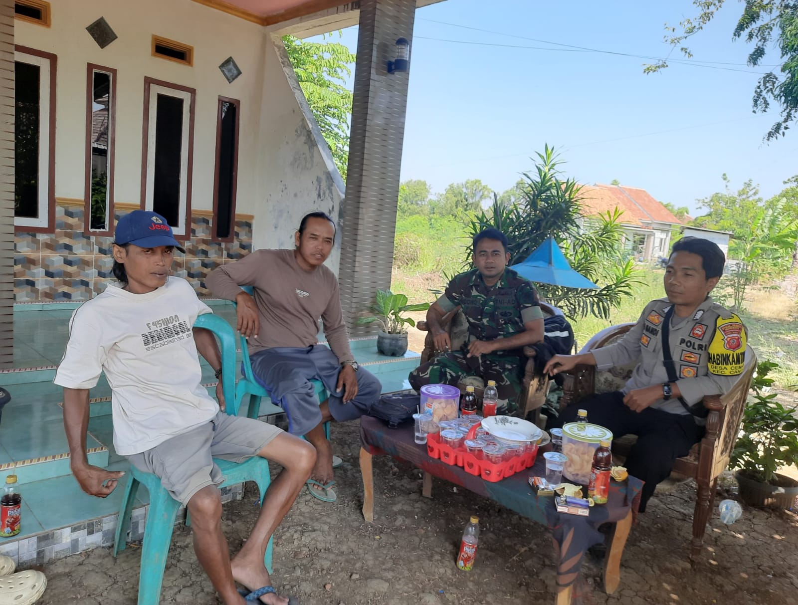 Dengan suasana akrab di teras rumah warga, Bhabinkamtibmas dan Babinsa berbincang santai dengan masyarakat, mendengarkan aspirasi dan menyampaikan pesan-pesan kamtibmas. Kegiatan ini menjadi bukti nyata bahwa sinergi TNI-Polri hadir hingga ke akar rumput demi menjaga stabilitas dan kenyamanan lingkungan.