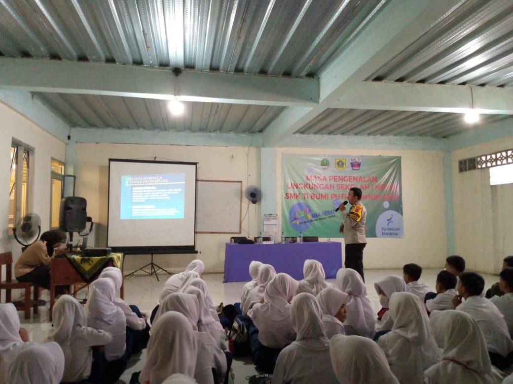 Seperti yang dilakukannya personil Bhabinkamtibmas Kelurahan Karadenan Kecamatan Cibinong Kabupaten Bogor Aiptu Heru Budiyanto yang menjadi narasumber pada acara MPLS tahun ajaran 2023/2024 di SMK TI Bumi Putra Kelurahan Karadenan Kecamatan Cibinong Kab. Bogor pada Kamis (20/07/2023).
