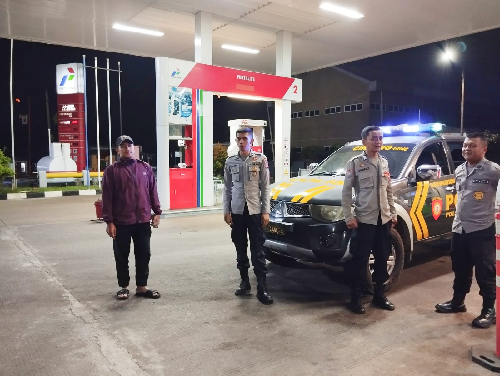 Majalengka, – Bhabinkamtibmas Polsek Cikijing dari Polres Majalengka Polda Jabar, yang terdiri atas Aiptu Usin, Bripka Achmad Supriyono, dan Briptu Asep Indra, melakukan pengawasan di SPBU Cikijing Kabupaten Majalengka pada Jum’at (29/03/2024) dini hari.