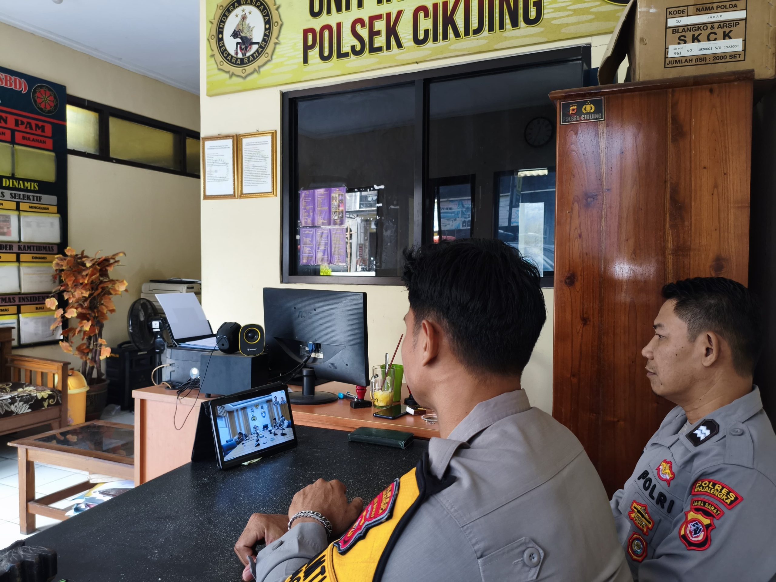 Majalengka – Bhabinkamtibmas Polsek Cikijing Polres Majalengka Polda Jabar Aiptu Usin bersama Brigadir Pijar Hamdani, S.H. mengikuti Anev kinerja Bhabinkamtibmas terkait pemeliharaan situasi keamanan dan ketertiban masyarakat (Sitkamtibmas) melalui zoom clouds meeting, Selasa (14/10/2025).