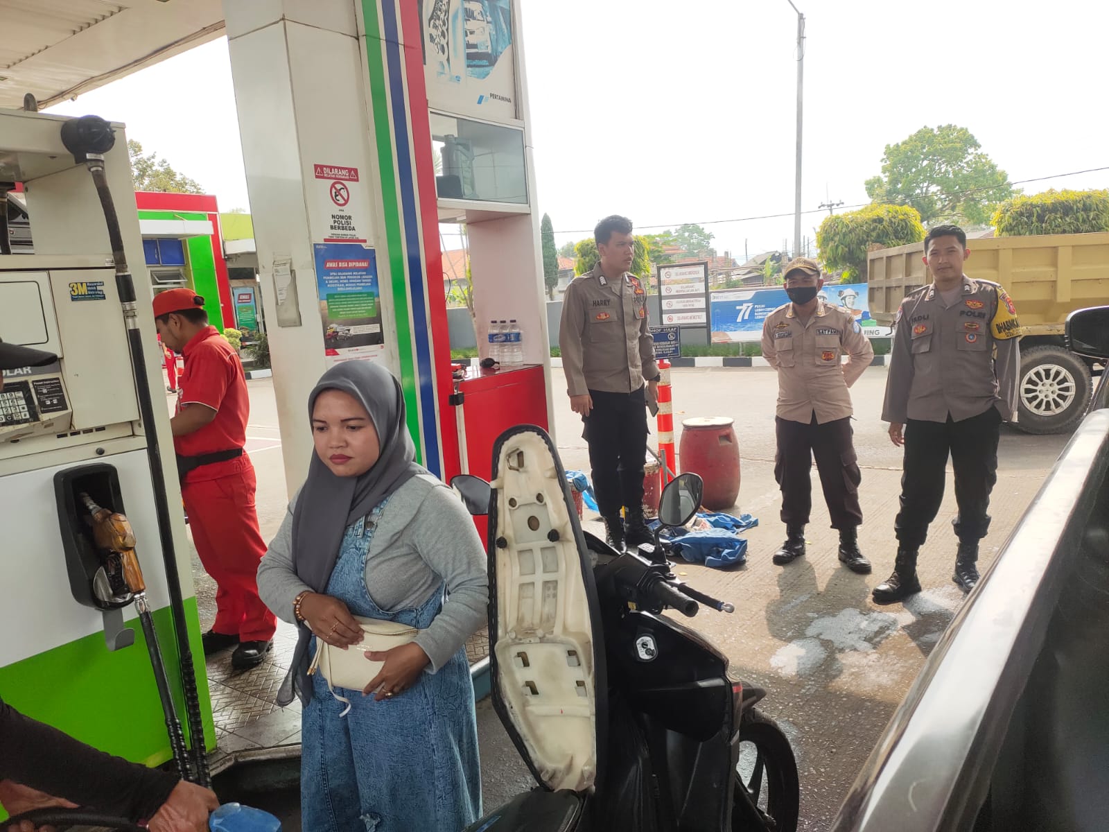 Bhabinkamtibmas Polsek Cikijing Membantu Mencegah Gangguan Kamtibmas di SPBU