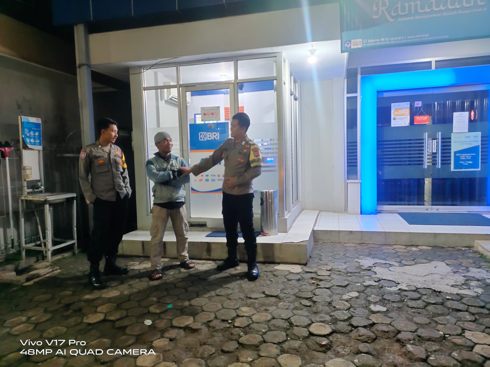 Majalengka – Untuk mencegah potensi gangguan kamtibmas, Bhabinkamtibmas Polsek Cikijing Polres Majalengka Polda Jabar, Bripka Harry dan Briptu Fadli, melaksanakan monitoring di Bank BRI Unit Cikijing, Kecamatan Cikijing, Kabupaten Majalengka, pada Selasa (02/04/2024) dini hari.