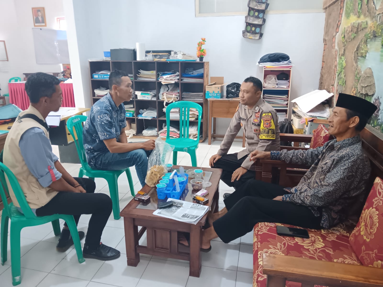 Majalengka – Bhabinkamtibmas Polsek Cikijing Polres Majalengka Polda Jabar, Bripka Kurdiyanto melaksanakan sambang silaturahmi dengan Perangkat Desa Cilancang guna berkoordinasi mengenai perkembangan Kamtibmas. Kegiatan ini berlangsung di Kantor Desa Cilancang, Kecamatan Cikijing, Kabupaten Majalengka, pada Rabu (11/09/2024).