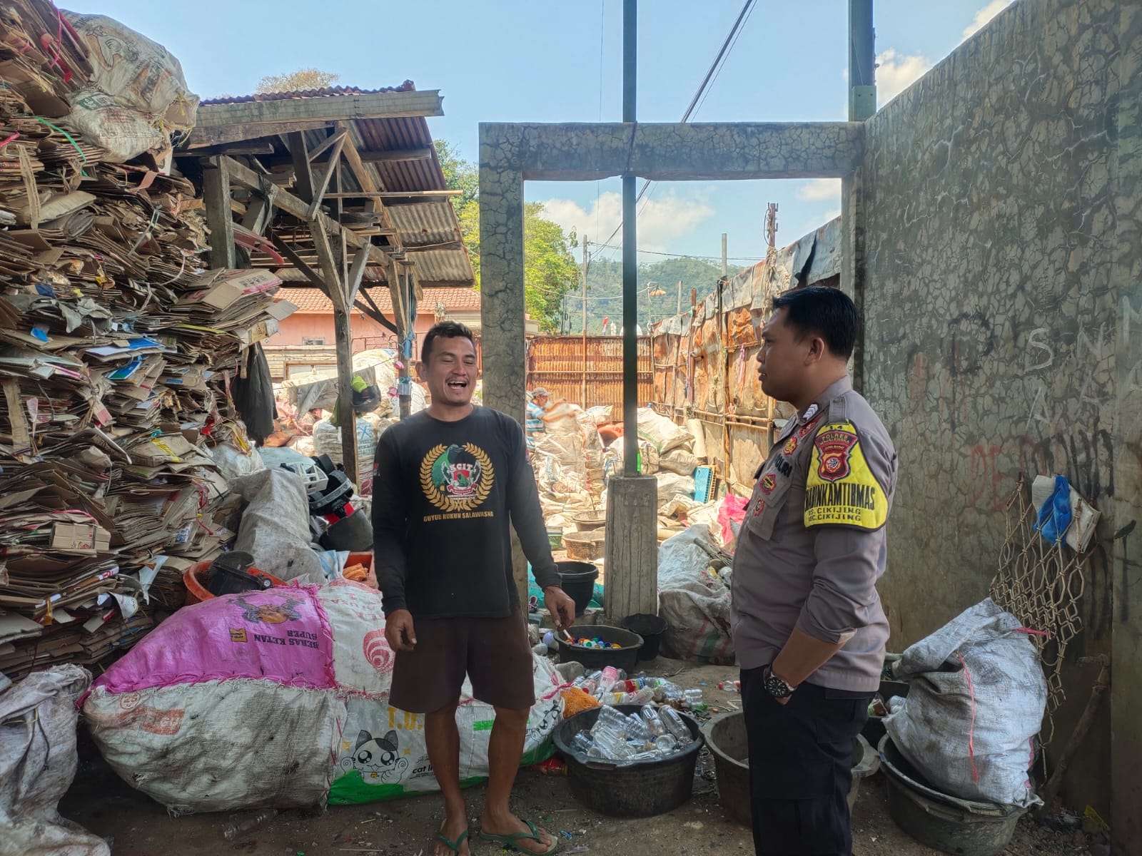 Majalengka, – Bhabinkamtibmas Polsek Cikijing Polres Majalengka Polda Jabar Bripka Dede Arif menyambangi gudang barang bekas di Desa Sindangpanji, Kecamatan Cikijing, Kabupaten Majalengka, guna menyampaikan pesan-pesan Kamtibmas. Senin (04/09/2023).