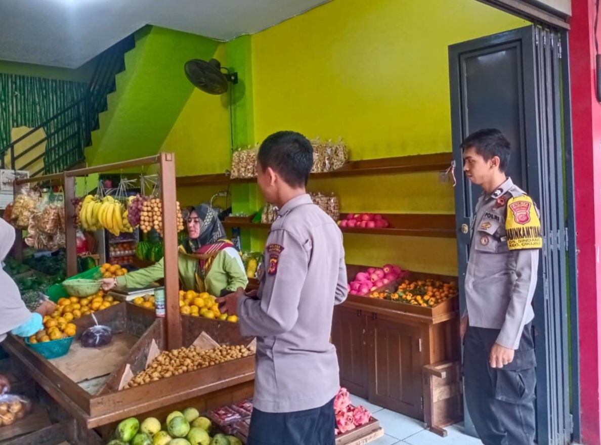 Majalengka – Guna membangun kemitraan antara anggota Polri dengan masyarakat demi terciptanya situasi kamtibmas yang aman dan kondusif, Bhabinkamtibmas Polsek Cikijing Polres Majalengka Polda Jabar, Bripka Achmad Supriyono dan Briptu Asep Indra menyambangi penjual buah di Pasar Cikijing, Senin (28/08/2023).