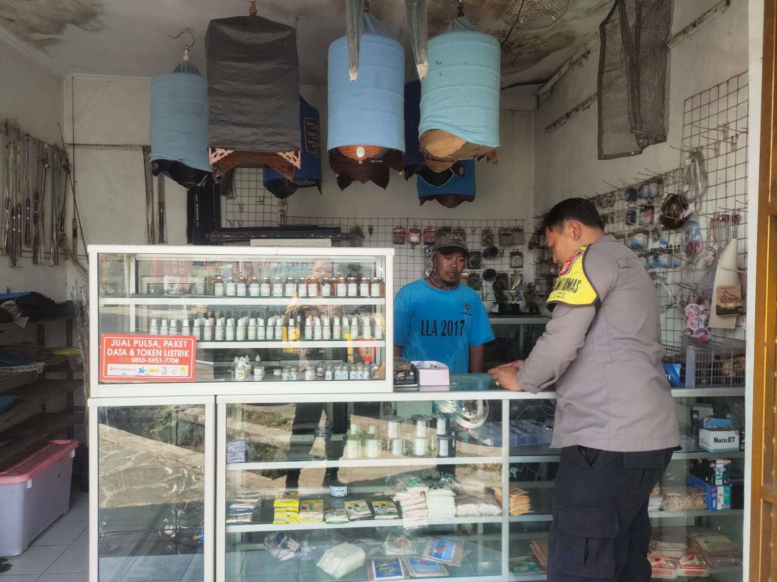 Majalengka – Bentuk upaya menjalin komunikasi dengan masyarakat, Bhabinkamtibmas Polsek Cikijing Polres Majalengka Polda Jabar Bripka Dede Arif dan Briptu Fadli melakukan patroli dan menyambangi Toko peralatan pancing dan menyampaikan himbauan Kamtibmas kepada pemilik toko tersebut, Kamis (07/09/2023).