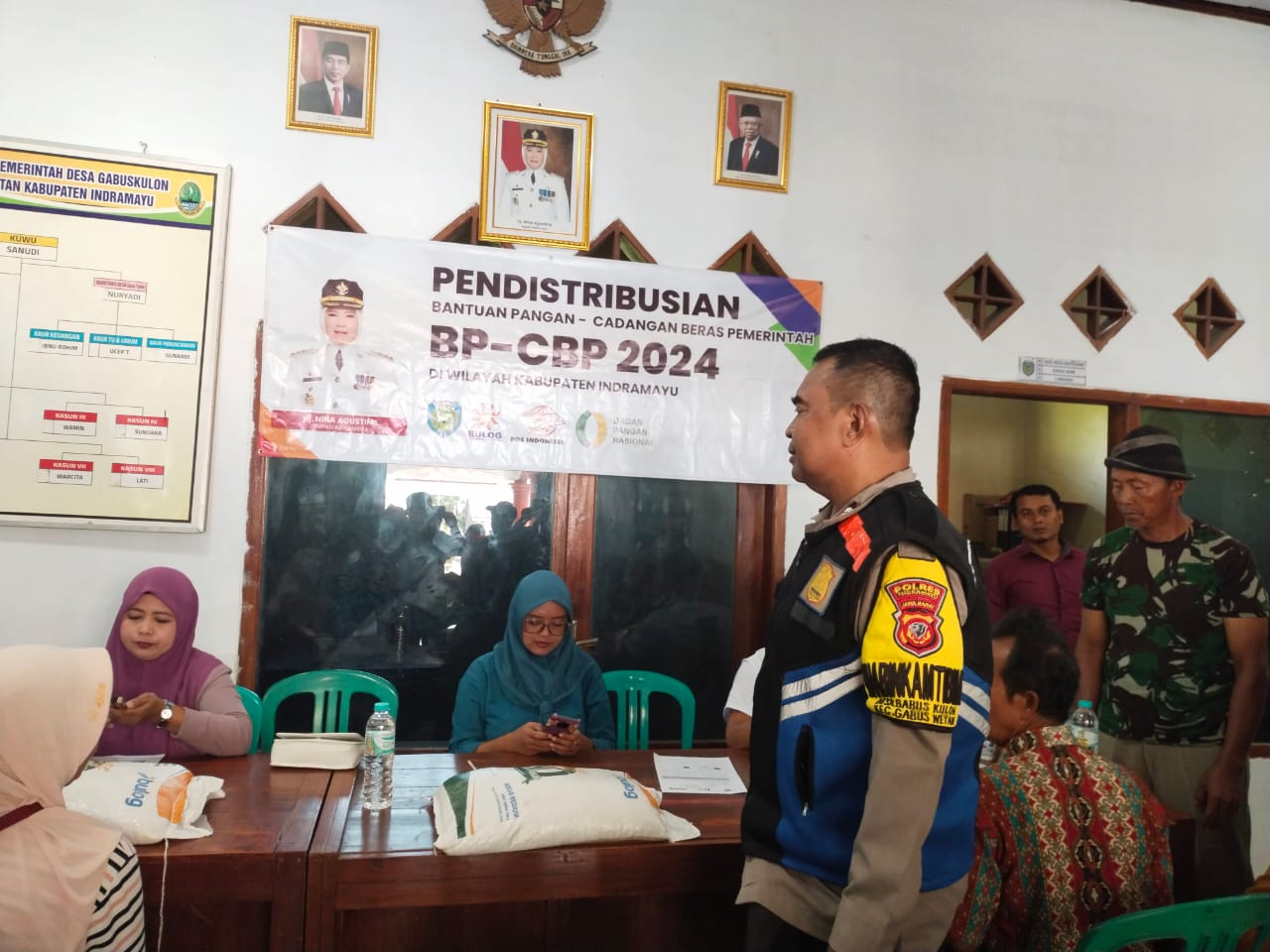 ndramayu,– Polsek Gabuswetan jajaran Polres Indramayu Polda Jabar bersama Koramil setempat melakukukan pengamanan penyaluran Program Bantuan Pangan dari Kemensos RI di Desa Gabuskulon, Kecamatan Gabuswetan, Kabupaten Indramayu, Selasa (13/8/2024).
