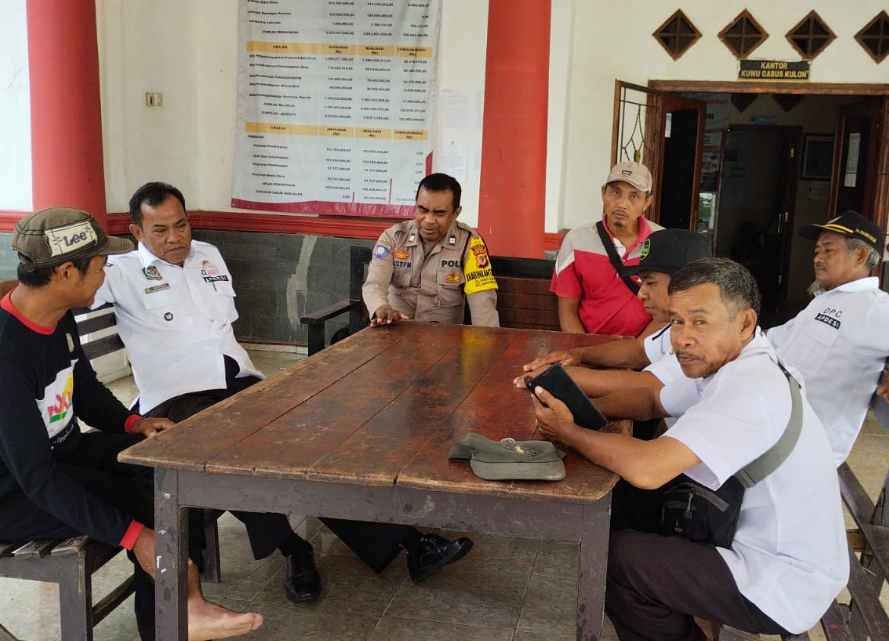Indramayu, — Bhabinkamtibmas Polsek Gabuswetan jajaran Polres Indramayu Polda Jabar, Aiptu Kriste, FN. melaksanakan silaturahmi Kamtibmas dengan perangkat desa, di kantor Desa Gabuskulon Kecamatan Gabuswetan, Kabupaten Indramayu, Senin (04/09/2023).