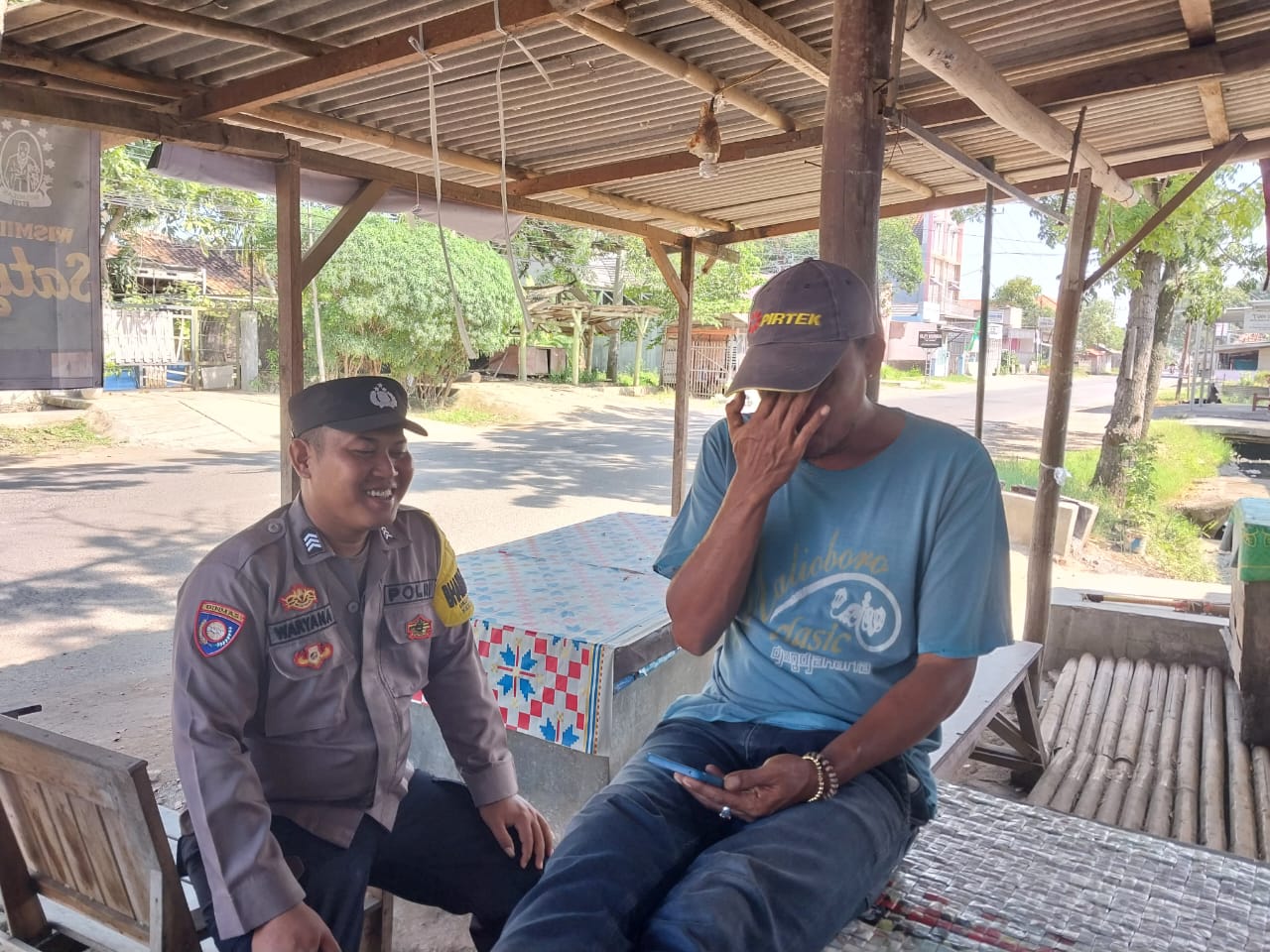 Indramayu,- Bhabinkamtibmas Polsek Gabuswetan jajaran Polres Indramayu Polda Jabar Brigpol Waryana, S.H., menyambangi warga di Desa Babakanjaya, Kecamatan Gabuswetan, Kabupaten Indramayu, Sabtu (30/3/2023)