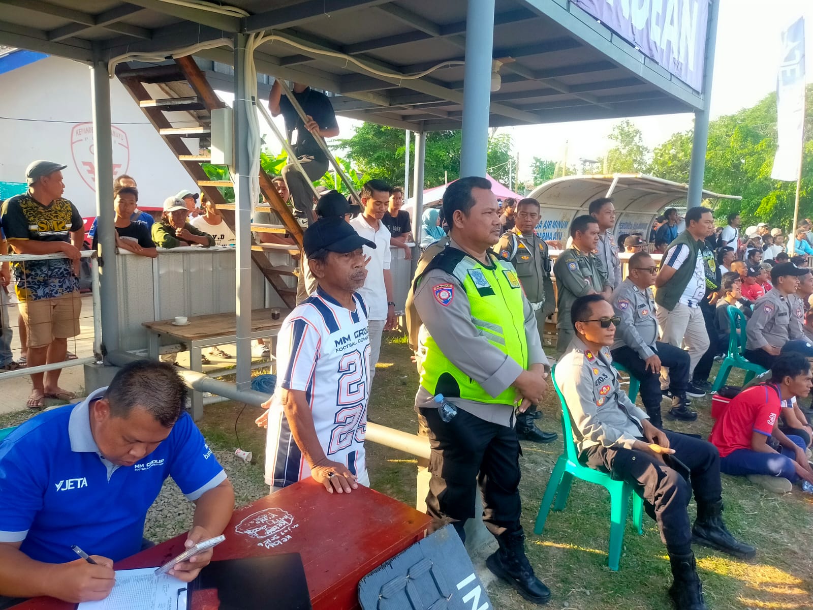 Indramayu – Dalam rangka menciptakan situasi yang aman dan kondusif, Bhabinkamtibmas Kelurahan Kepandean Polsek Indramayu, Polres Indramayu Polda Jabar Aiptu Khusnan Ali, A.Md, bersama personel gabungan TNI-Polri melaksanakan pengamanan final turnamen sepak bola “MM Football Competition 2025” yang digelar di Lapangan PORKI Kepandean, Kabupaten Indramayu, pada Sabtu (11/10/2025) kemarin.