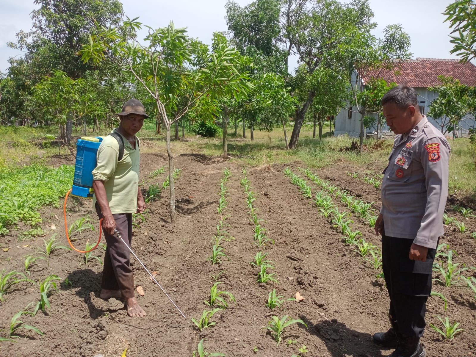 Selain memantau pertumbuhan jagung, Bhabinkamtibmas juga memberikan motivasi kepada warga agar tetap semangat mengelola lahan.