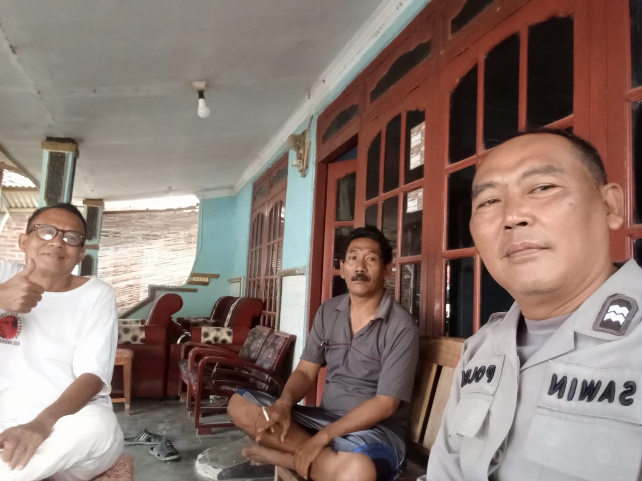 Indramayu — Suasana teras rumah warga saat Aiptu Sawin, Bhabinkamtibmas Polsek Jatibarang Polres Indramayu Polda Jabar melaksanakan sambang warga di Desa Kebulen, Kecamatan Jatibarang, Sabtu siang (23/8/2025).