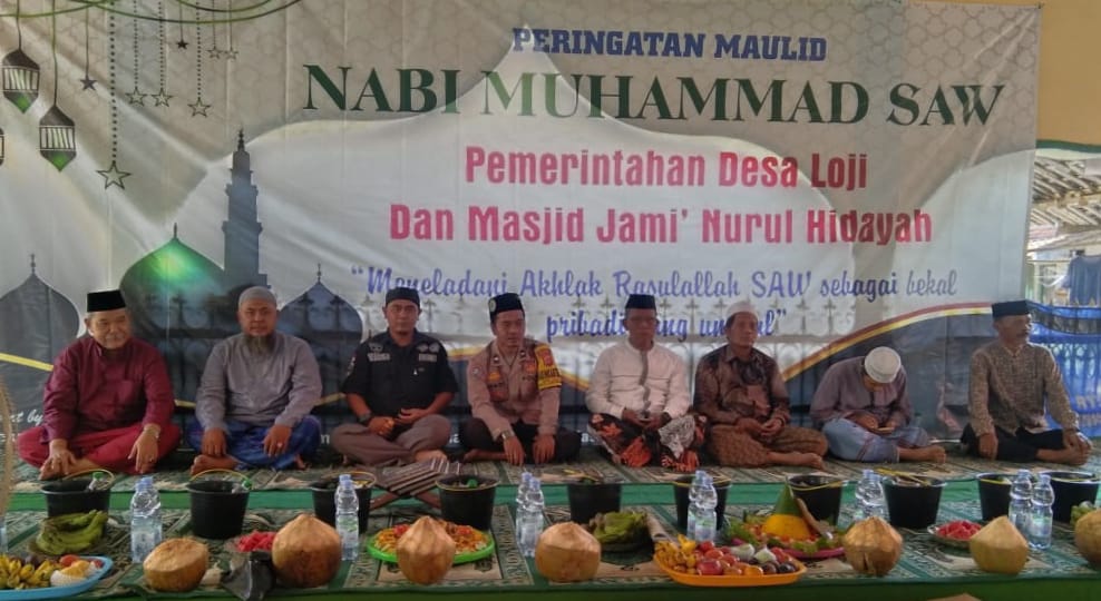 Majalengka – Bhabinkamtibmas Polsek Jatiwangi, Polres Majalengka, Polda Jabar melalui Bripka Hadi Solehudin, SH, MH bersama Pemerintahan Desa Loji menghadiri Peringatan Maulid Nabi Muhammad SAW, Kamis (28/09/2023).