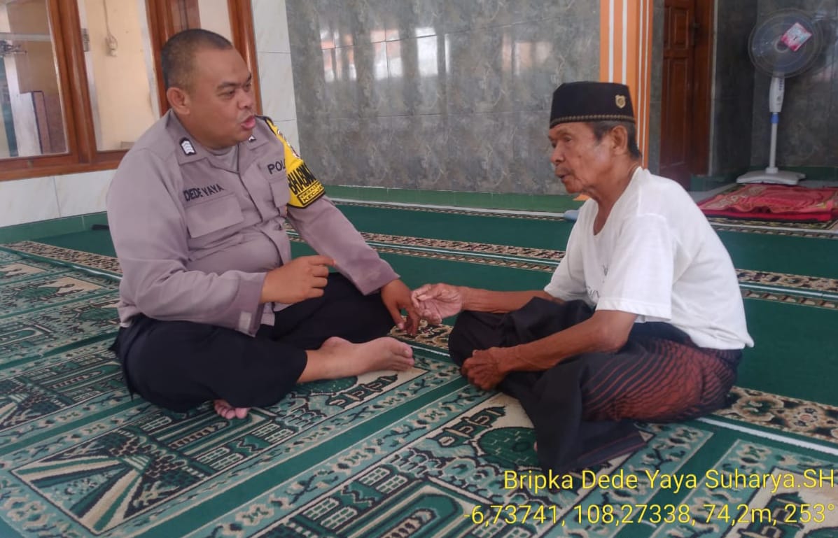 Majalengka,– Dalam rangka mengintensifkan Program Patepang Sono Sareng Ulama, Polsek Jatiwangi Polres Majalengka melalui Bhabinkamtibmas Bripka Dede Yaya Suharya, SH melaksanakan kegiatan Silaturahmi dengan Tokoh Agama/Ulama di Mesjid Baiturrohman Desa Leuweung Gede Kecamatan Jatiwangi Kabupaten Majalengka, Kamis (26/07/2023).