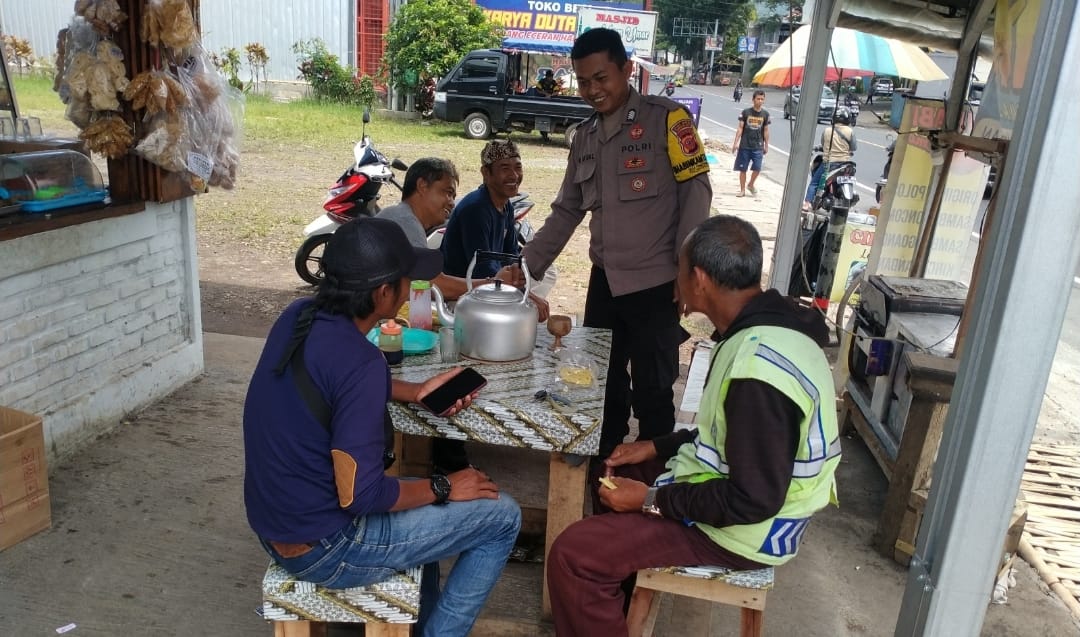 -Seperti halnya yang dilakukan Bhabinkamtibmas Ds. Pamoyanan menyambangi warga yang sedang duduk-duduk santai dan ngobrol , pada kesempatan yang baik tersebut Babin menyampaikan pesan