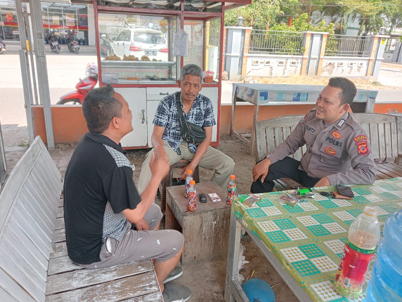 Sambil ngopi, memberikan himbaun dan pesan pesan kamtibmas kepada masyarakat.
