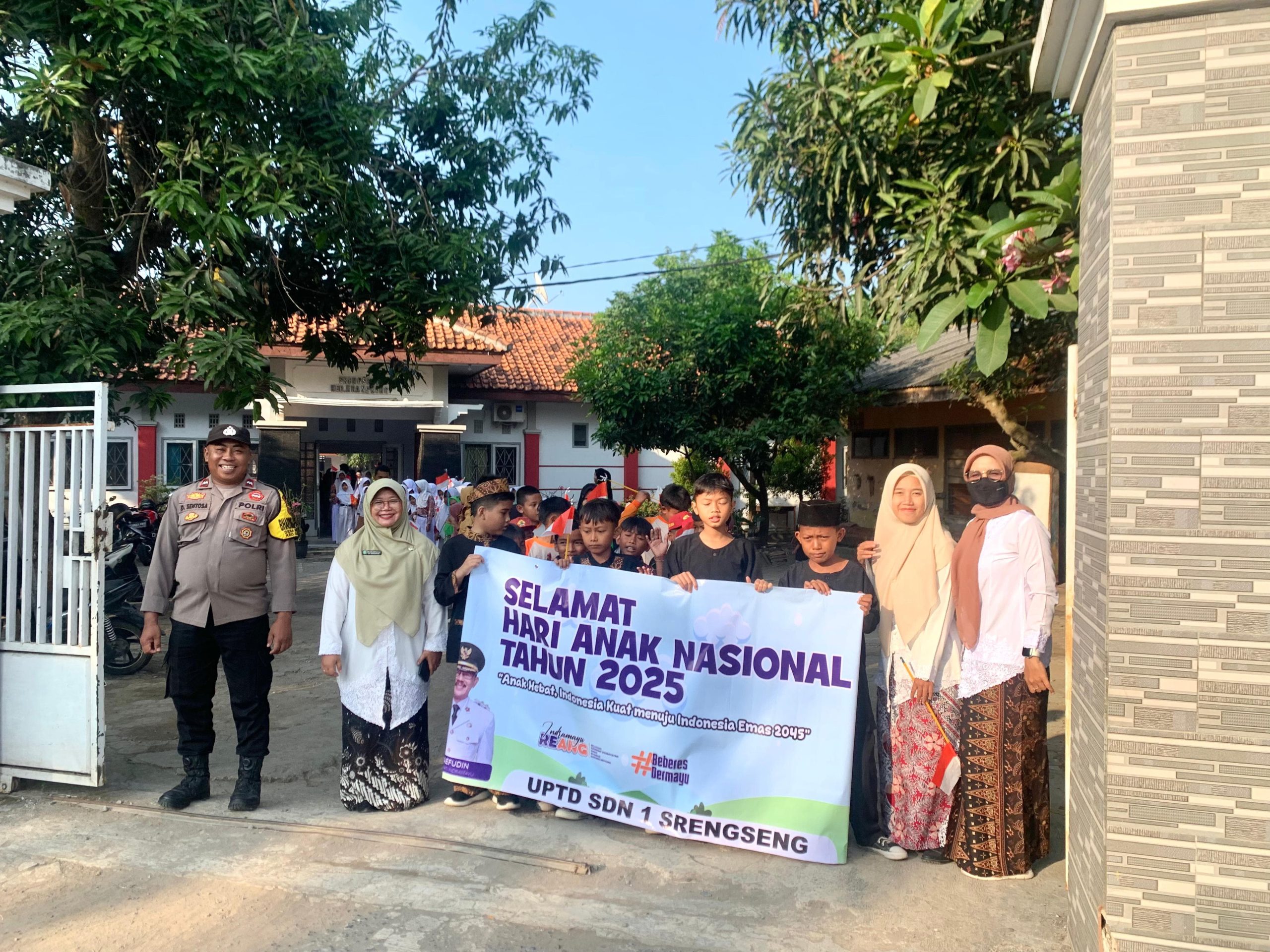 Indramayu – Dalam rangka memperingati Hari Anak Nasional 2025, Bhabinkamtibmas Desa Srengseng, Polsek Krangkeng Polres Indramayu Polda Jabar Aipda Demi Sentosa, melaksanakan pengawalan kegiatan arak-arakan pelajar SD Negeri 1 Srengseng, Rabu (23/7/2025).