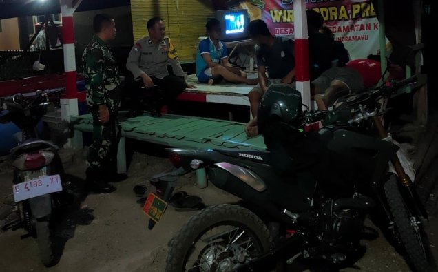 Bhabinkamtibmas Polsek Kroya Polres Indramayu Berdialog Dengan Warga di Pos Satkamling Blok Cilegeh Desa Temiyang