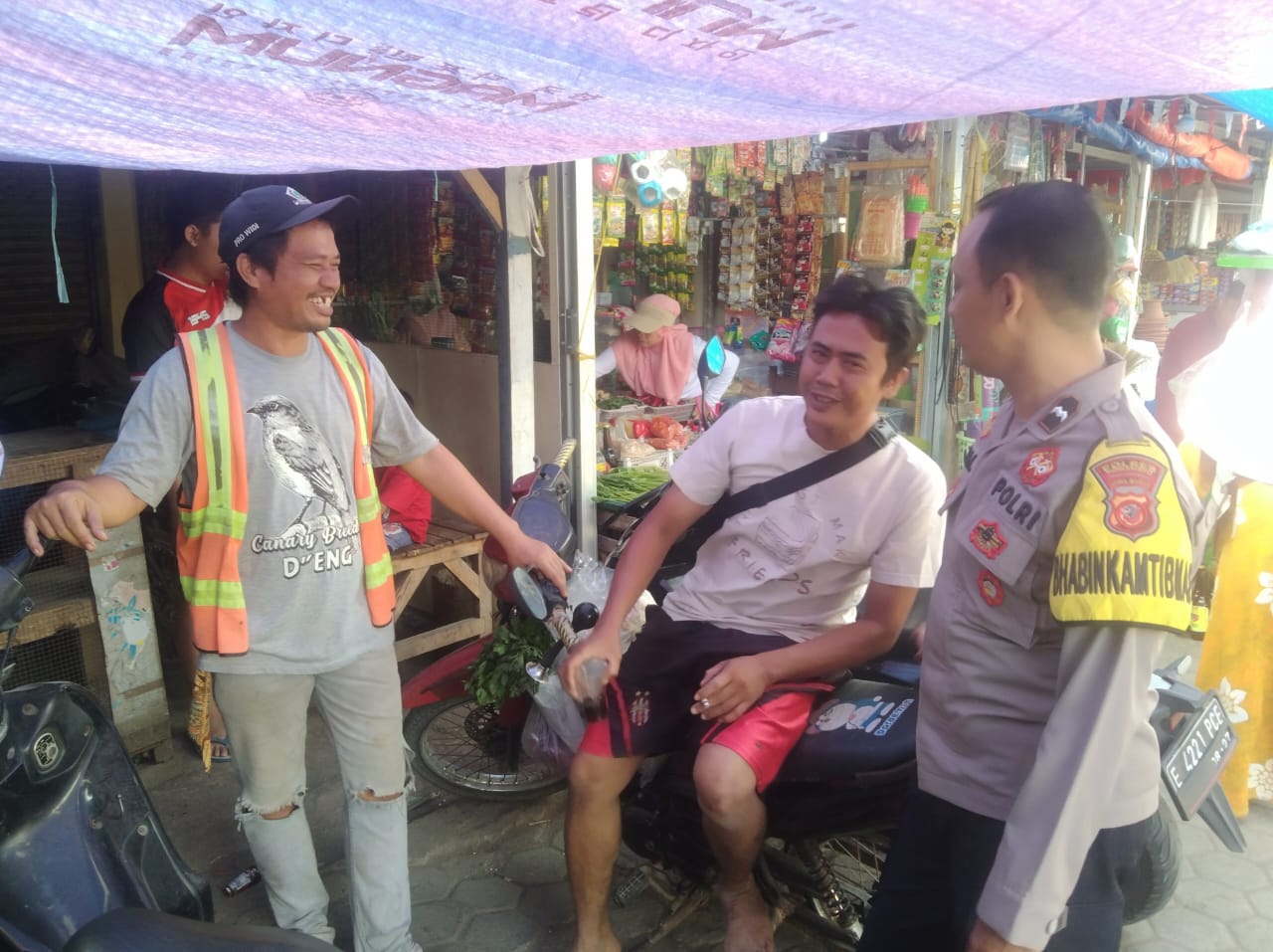 Dalam kegiatan tersebut, Aipda Rizal memberikan sejumlah imbauan kamtibmas, terutama kepada juru parkir dan pengunjung pasar.