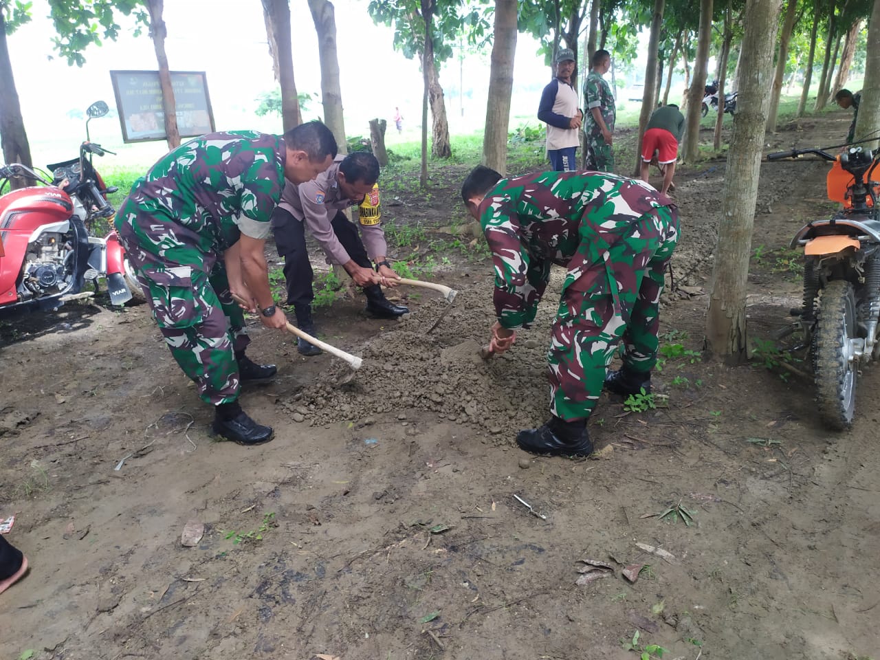 Kegiatan ini merupakan bentuk kolaborasi antara aparat keamanan, TNI, dan warga masyarakat dalam rangka meningkatkan infrastruktur di wilayah setempat. Dengan semangat gotong-royong, Bripka Ali Hadad dan anggota Koramil bersama-sama dengan masyarakat turut ambil bagian dalam pembangunan jalan di sekitar embung.