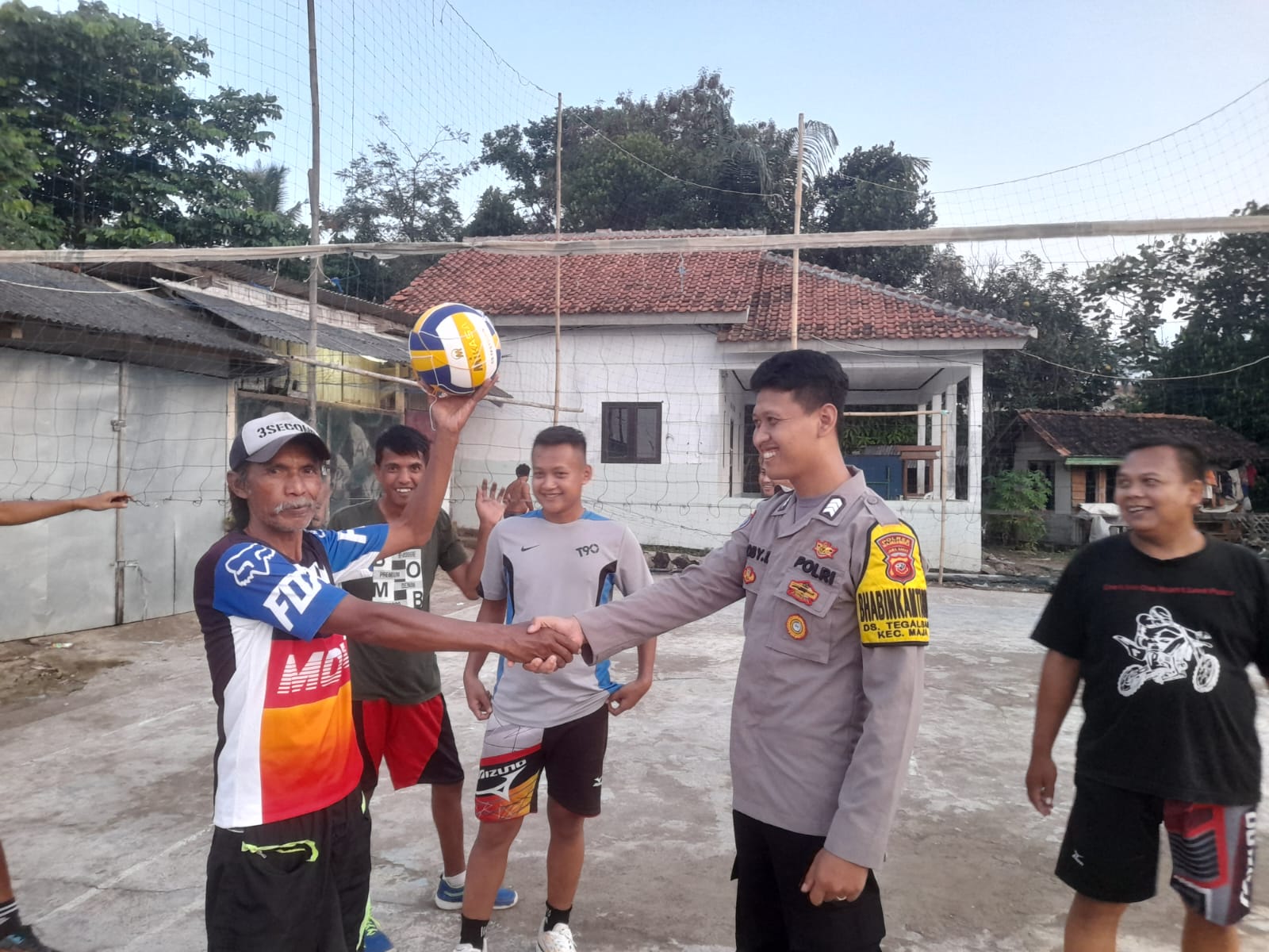 Bhabinkamtibmas Polsek Maja Berikan Sarana Bola Volly untuk Masyarakat Blok Senen mjl