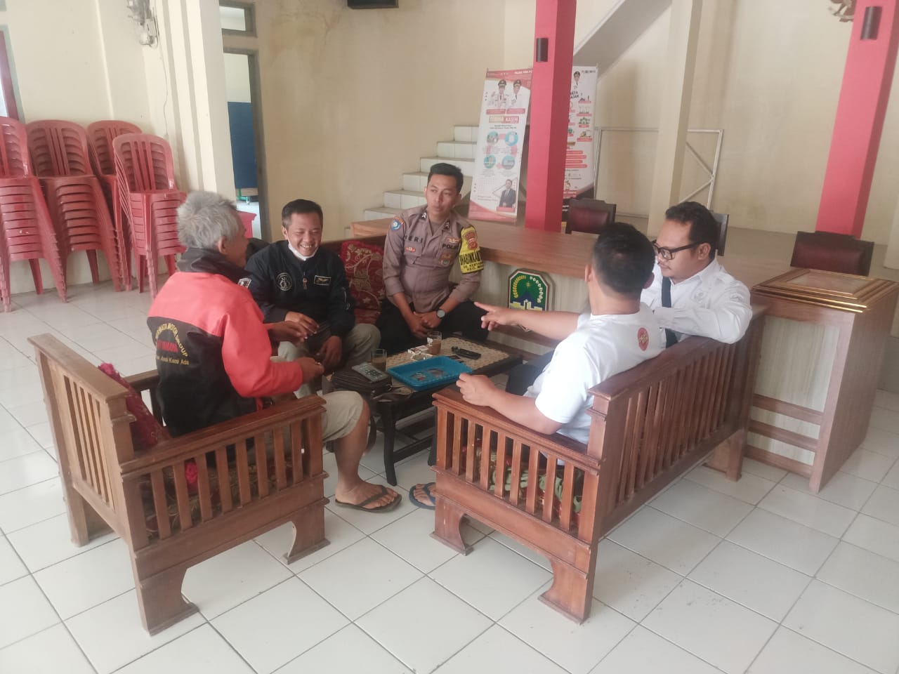 Dalam suasana yang akrab, Briptu Heri Pangestu berdialog dengan Aparatur Desa dan warga, membahas berbagai hal terkait keamanan dan ketertiban di lingkungan desa. Ia juga menyampaikan pesan-pesan penting terkait kamtibmas sebagai upaya untuk menjaga situasi aman dan kondusif di wilayah tersebut.