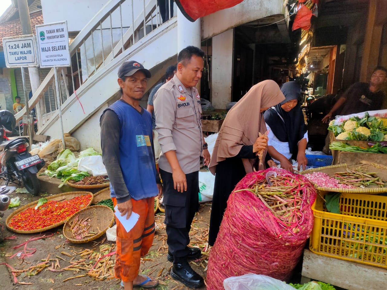 Majalengka,– Bhabinkamtibmas Desa Maja Selatan dari Polsek Maja, Polres Majalengka, Polda Jabar, Bripka Soleh, melaksanakan kegiatan sambang dan dialogis dengan para pedagang di pasar tradisional yang berada di Desa Maja Selatan, Kecamatan Maja, Kabupaten Majalengka, pada Rabu (29/05/2024). Kegiatan ini bertujuan untuk menyampaikan pesan-pesan kamtibmas kepada para pedagang dan pengunjung pasar.
