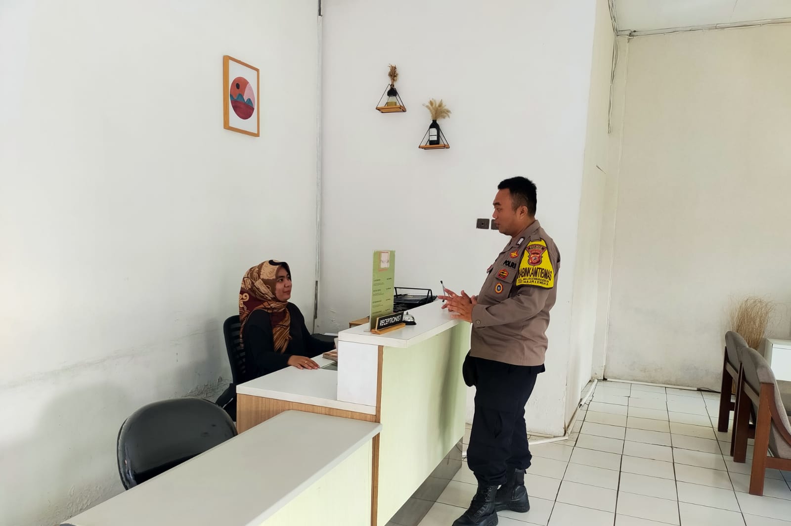 Majalengka, – Dalam rangka memelihara situasi kamtibmas yang aman dan kondusif, Bhabinkamtibmas Polsek Majalengka Kota, Polres Majalengka, Polda Jawa Barat, Bripka Elbi Mulyadi memberikan imbauan tentang Harkamtibmas kepada petugas resepsionis Hotel Putra Jaya yang berada di wilayah Kelurahan Majalengka Kulon, Kecamatan Majalengka, Kabupaten Majalengka pada Sabtu (20/07/2024).