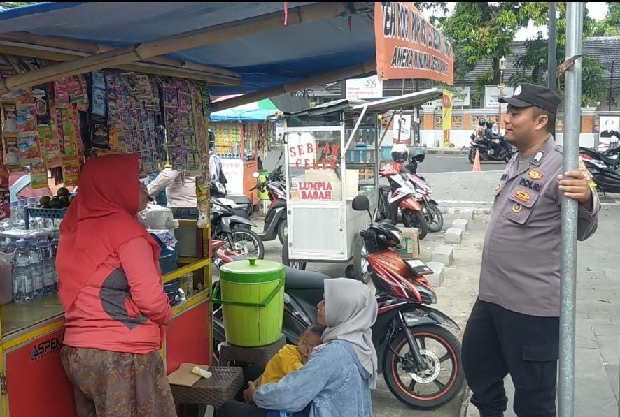 Bhabinkamtibmas Polsek Majalengka Kota Sambangi Pedagang Kaki Lima di Area Alun-Alun mjl
