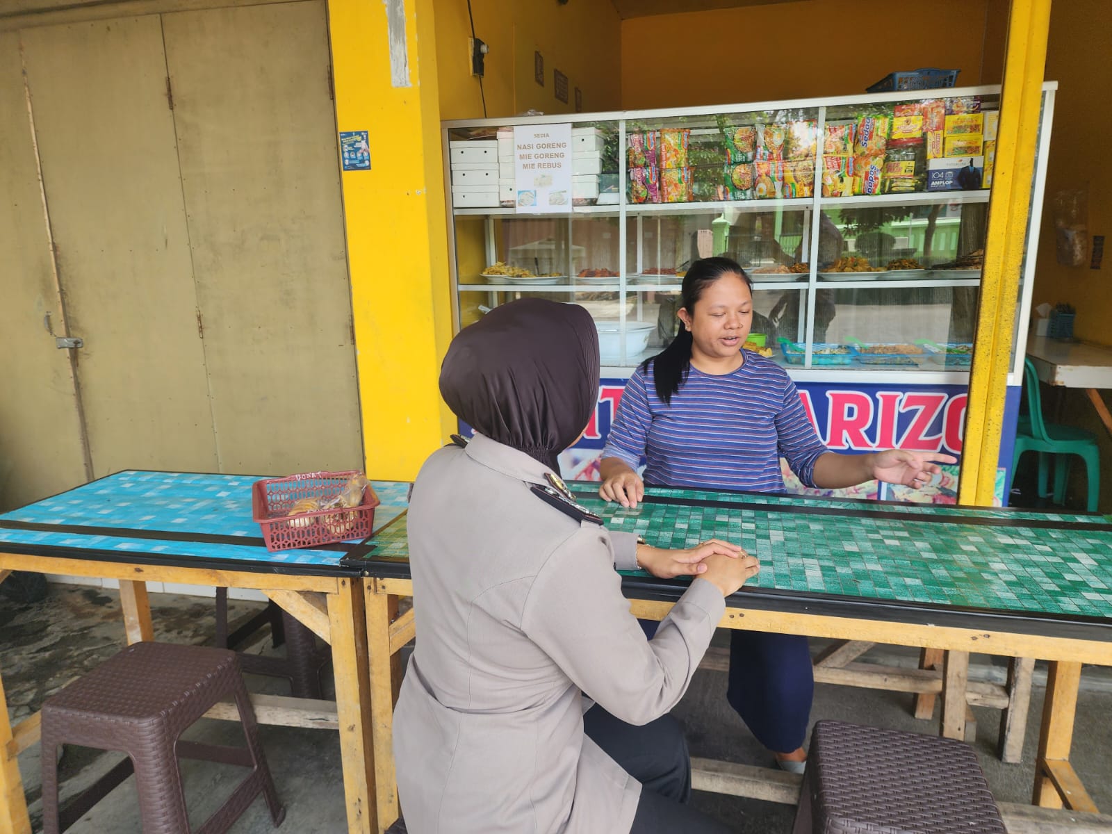 Dalam kegiatan tersebut, Brigadir Desi berbincang-bincang dengan pemilik warung nasi dan menggali informasi seputar situasi kamtibmas di sekitar lingkungan warung tersebut. Ia memberikan imbauan kamtibmas, seperti meningkatkan kewaspadaan terhadap potensi tindak kriminalitas, menjaga kebersihan, dan berkoordinasi dengan kepolisian apabila ada hal yang mencurigakan.