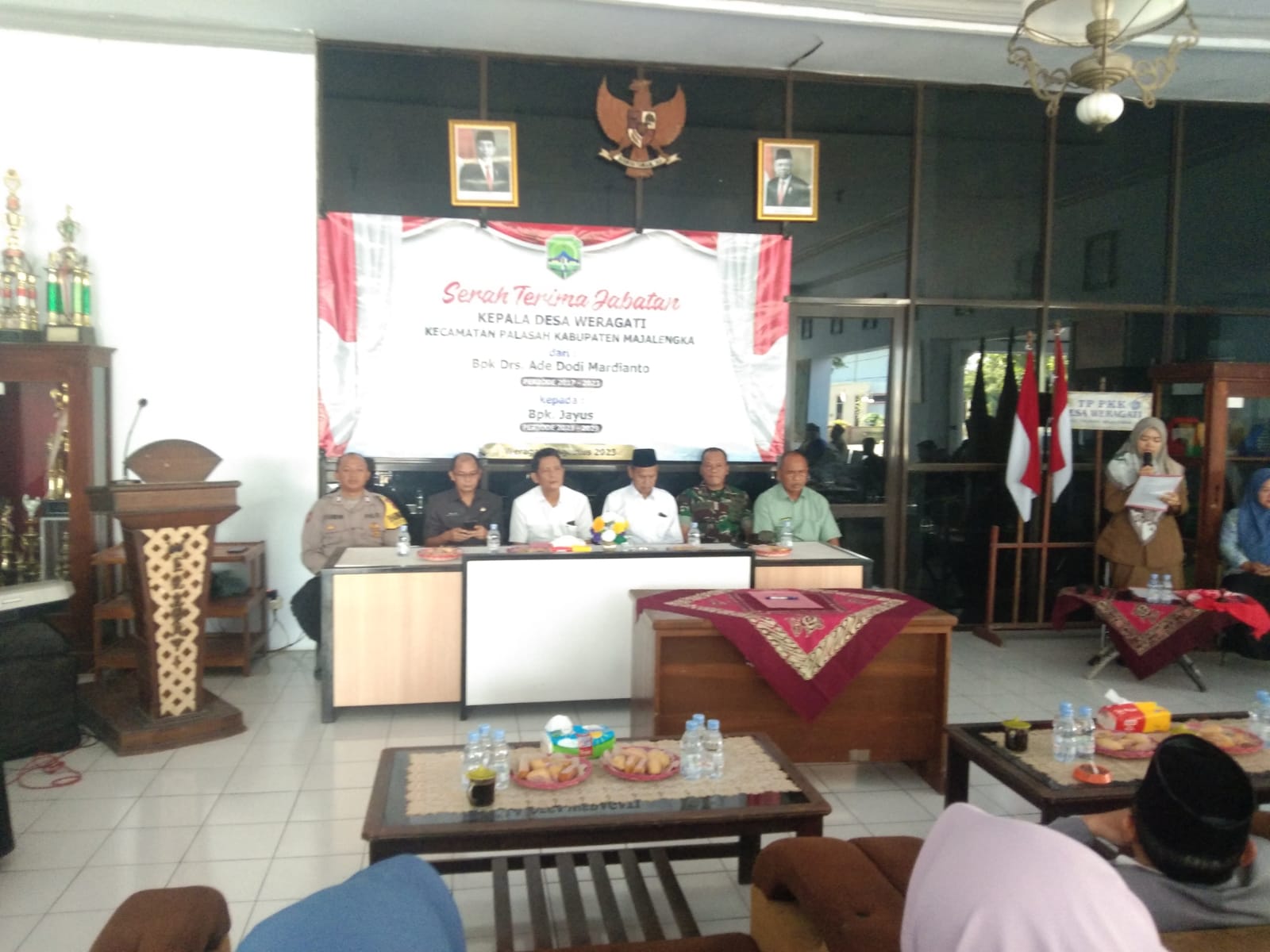 Majalengka,- Dalam rangka mendukung dan memperkuat hubungan yang harmonis antara pihak kepolisian dengan pemerintahan desa, Bhabinkamtibmas Polsek Palasah dari Polres Majalengka, Bripka Tio, turut hadir dalam acara serah terima jabatan Kepala Desa Weragati. Acara berlangsung di Balai Desa Weragati, Kecamatan Palasah, Kabupaten Majalengka pada Kamis (10/9/2023).