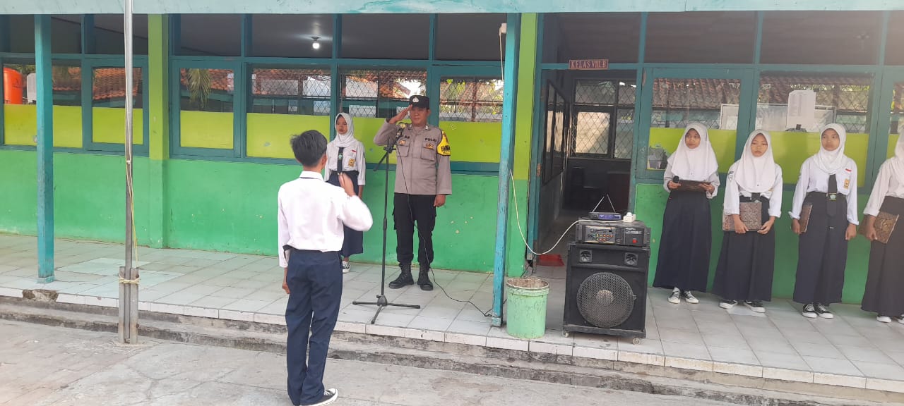 Indramayu – Bhabinkamtibmas Polsek Patrol, Polres Indramayu Polda Jabar, BRIPKA Adi Suwatno, S.H., menjadi pembina upacara bendera pada Hari Senin di Sekolah MTS Al Hidayah, Desa Patrol Baru, Kecamatan Patrol, Kabupaten Indramayu. Senin (22/7/2024)