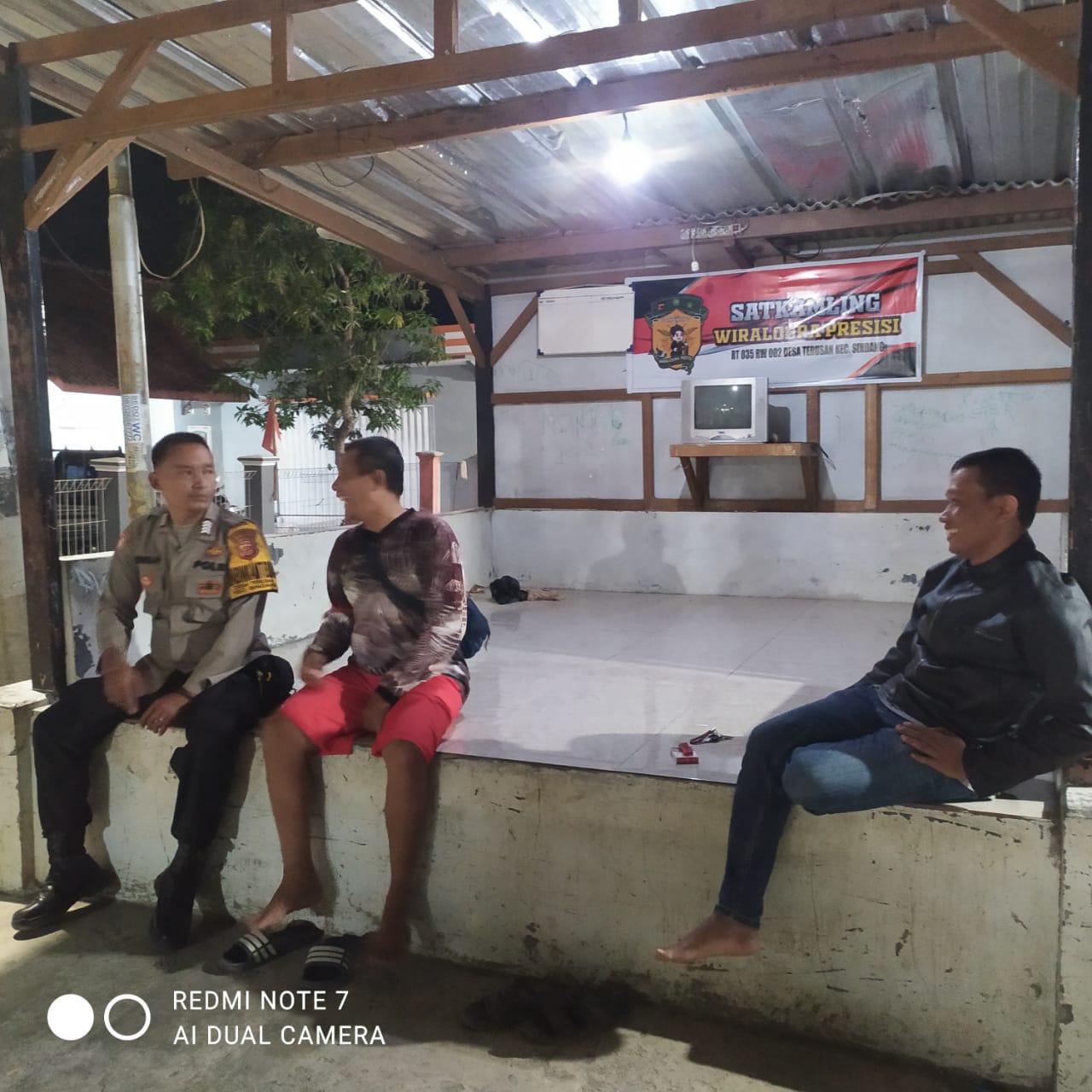 Indramayu – Bhabinkamtibmas Polsek Sindang jajaran Polres Indramayu Polda Jabar melaksanakan kegiatan sambang warga di Pos Satuan Keamanan Lingkungan (Satkamling) Wiralodra di Desa Terusan, Rt. 35 Rw 02, Kecamatan Sindang, Kabupaten Indramayu. Senin (18/9/2023) malam.