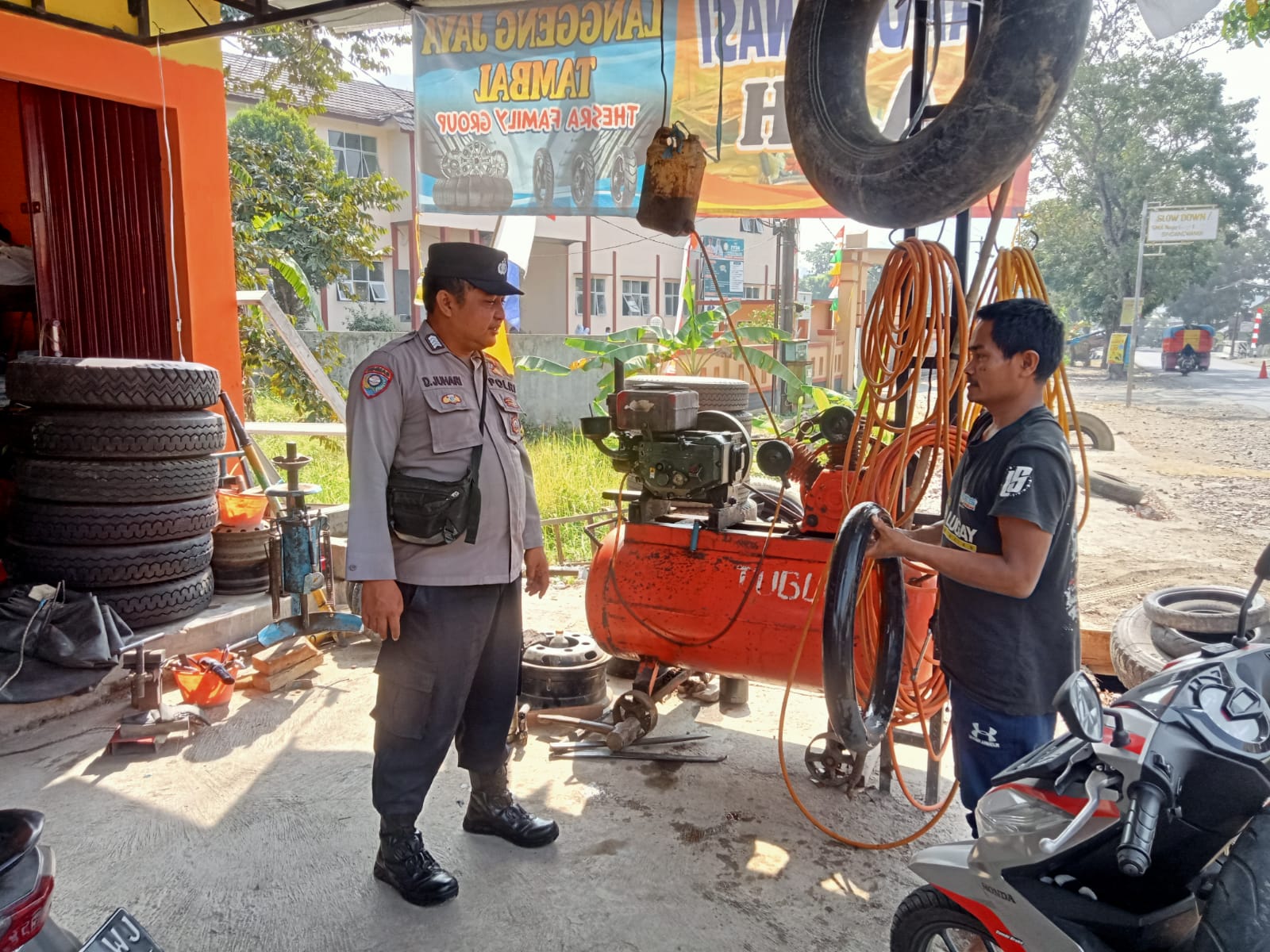 Selain itu, Bhabinkamtibmas juga mengajak pemilik tambal ban dan karyawan untuk menjalin kerjasama dengan kepolisian dalam menjaga keamanan sekitar usaha mereka. Dia menekankan pentingnya saling komunikasi dan melaporkan kejadian-kejadian yang mencurigakan kepada aparat kepolisian.