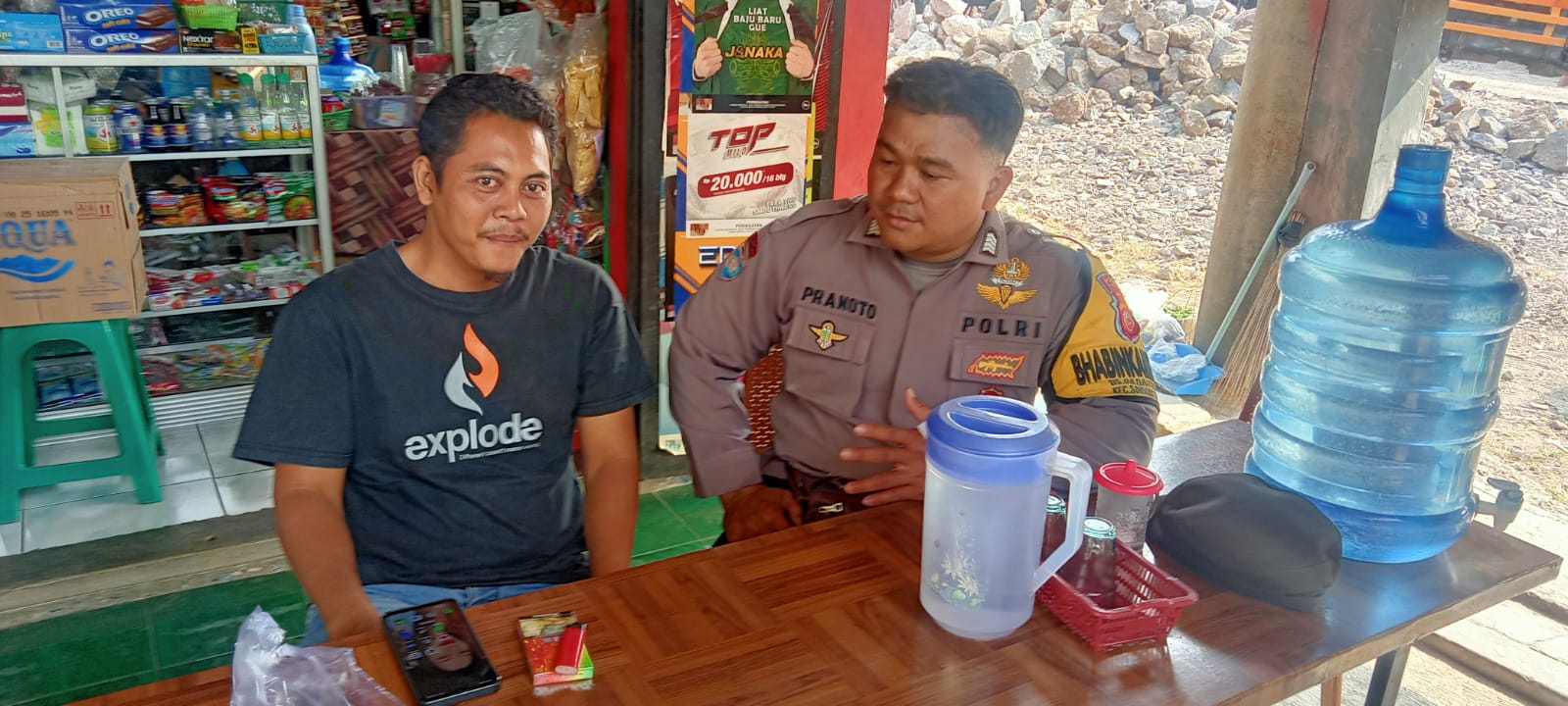 Bhabinkamtibmas Bripka Domo Pranoto memanfaatkan kesempatan tersebut untuk berinteraksi dengan warga yang tengah berkumpul di warung. Dalam pertemuan tersebut, Bripka Domo Pranoto menyampaikan imbauan dan pesan-pesan tentang pentingnya menjaga keamanan, ketertiban, dan kenyamanan di lingkungan sekitar.