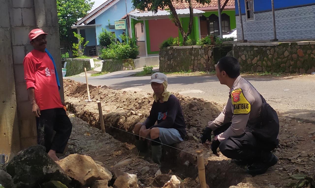 Bhabinkamtibmas Polsek Sindangwangi Sambangi Warga yang Sedang Membangun Selokan